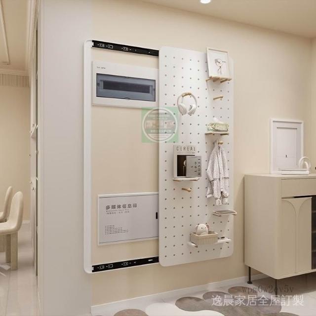 可開發票 弱電箱配電箱盒裝飾隱形推拉關閉壁掛式實木定製 電箱遮擋豎版 變電箱裝飾 電箱洞洞板 電錶箱遮擋