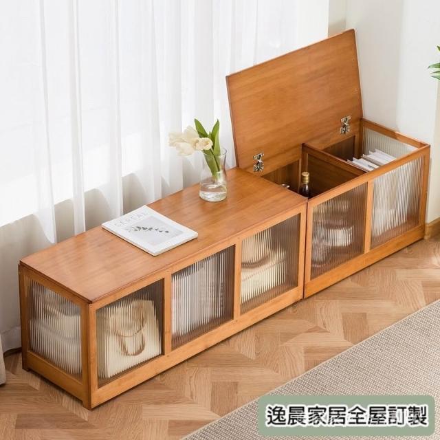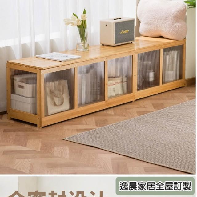 上掀式飄窗櫃 飄窗收納櫃 格子儲物櫃 床頭櫃子 臥室陽臺房間矮櫃子床邊櫃 翻蓋門床邊長條櫃 榻榻米魔方地櫃 可坐人長條櫃