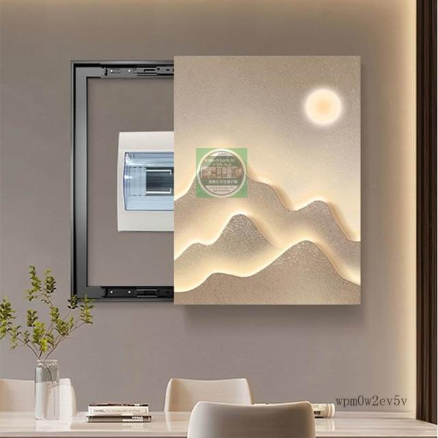 日照金山超薄電錶箱裝飾畵 輕奢高級感遮擋強弱配電箱蓋板 弱電箱蓋板 電箱裝飾盒 電箱裝飾遮擋 豎版 遮電箱 變電箱裝飾