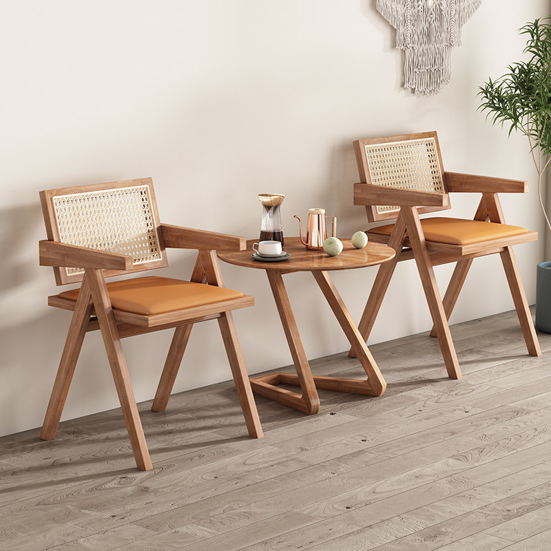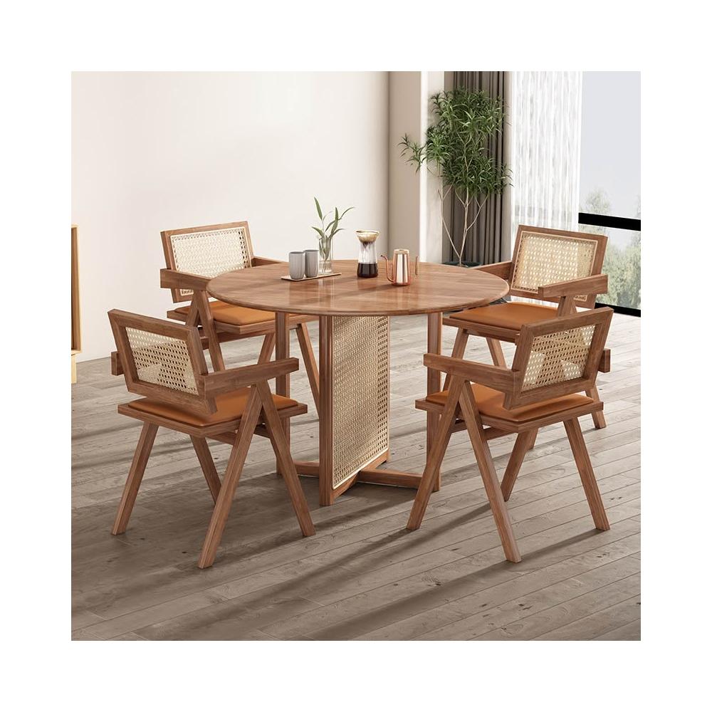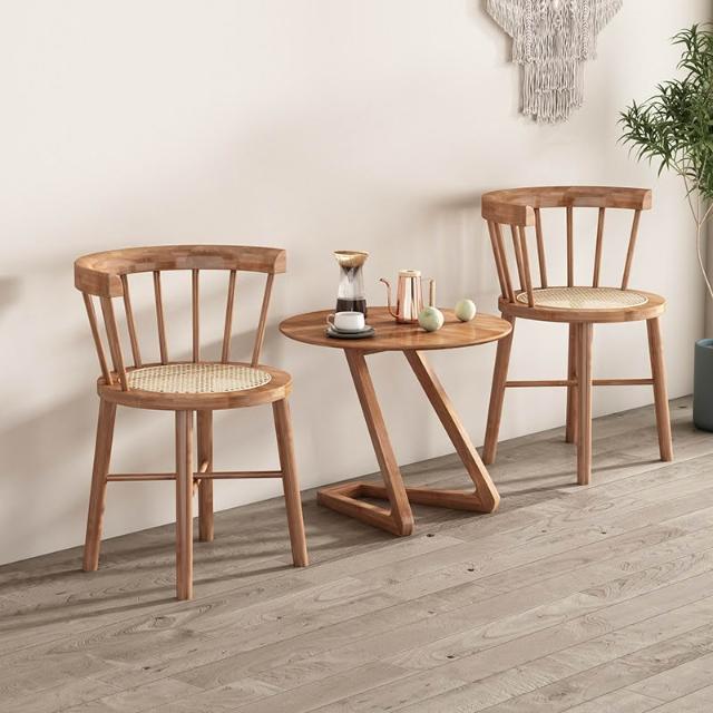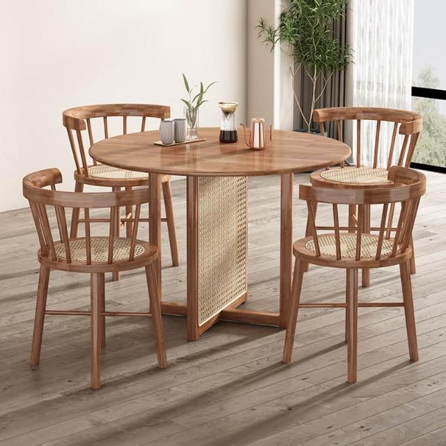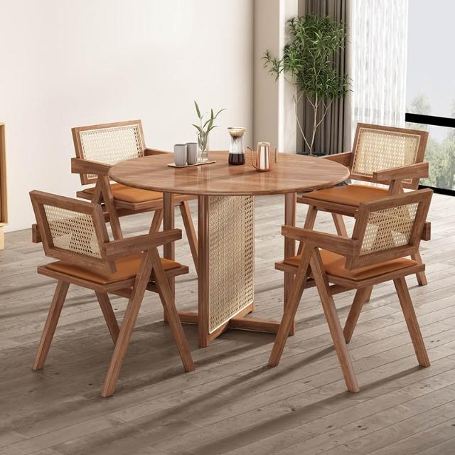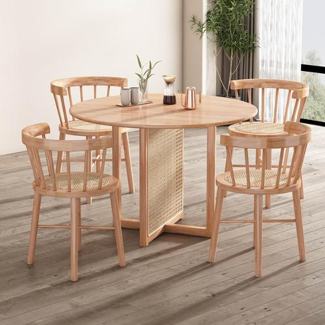 實木餐桌 圓桌 小餐桌 侘寂風實木餐桌北歐簡約小戶型藤編圓桌多功能民宿餐廳設計師桌子