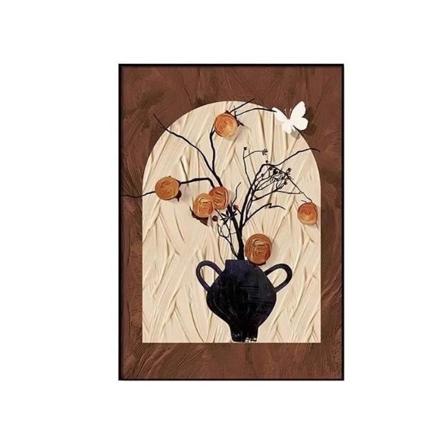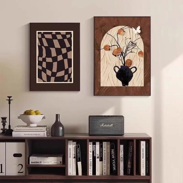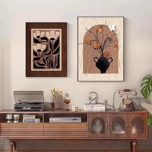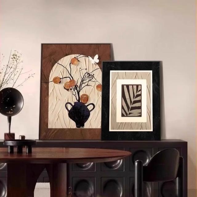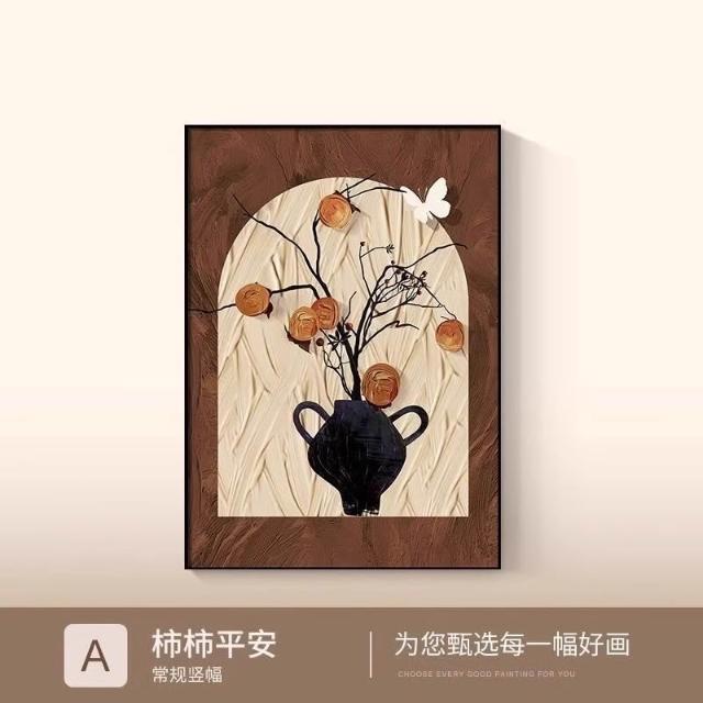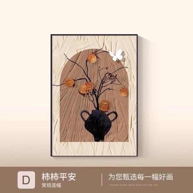 裝飾畫 可客製化柿柿平安+布紋膜單幅 法式桌面擺檯復古客廳裝飾畫 掛畫 壁畫 沙發背景墻掛畫 客廳掛畫 墻壁裝飾