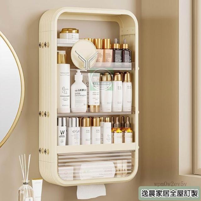 免打孔浴室置物架 壁掛收納盒 化妝品收納盒 家用衛生間多層置物架 浴櫃 衛生間收納盒 浴室用品收納櫃 紙巾盒 防水收納盒