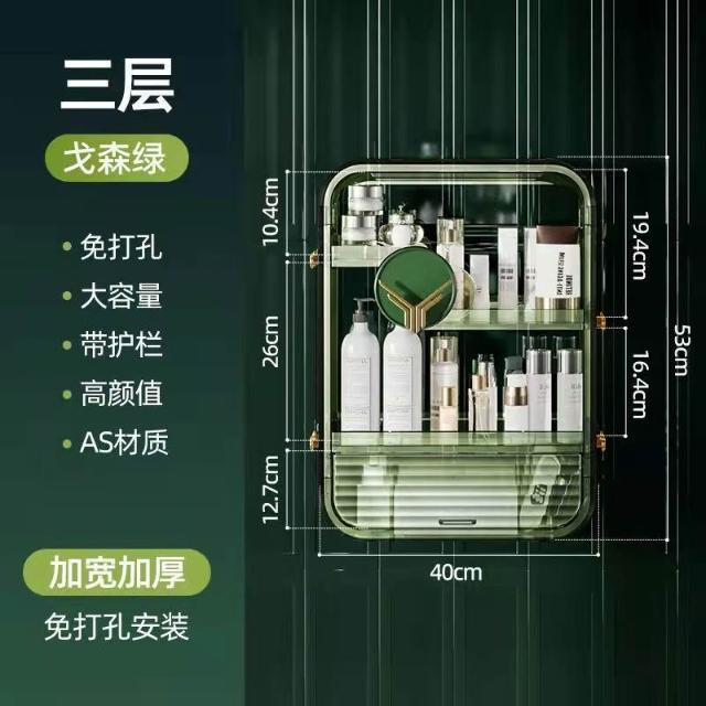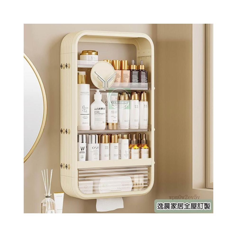 免打孔浴室置物架 壁掛收納盒 化妝品收納盒 家用衛生間多層置物架 浴櫃 衛生間收納盒 浴室用品收納櫃 紙巾盒 防水收納盒