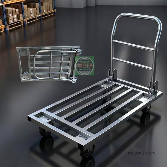 可開發票 手推車 平闆車 搬運車 貨車 鋼闆加厚靜音折疊四輪重型拉貨小推車 拖車 運車 載重拉黃沙水泥 折疊平闆車