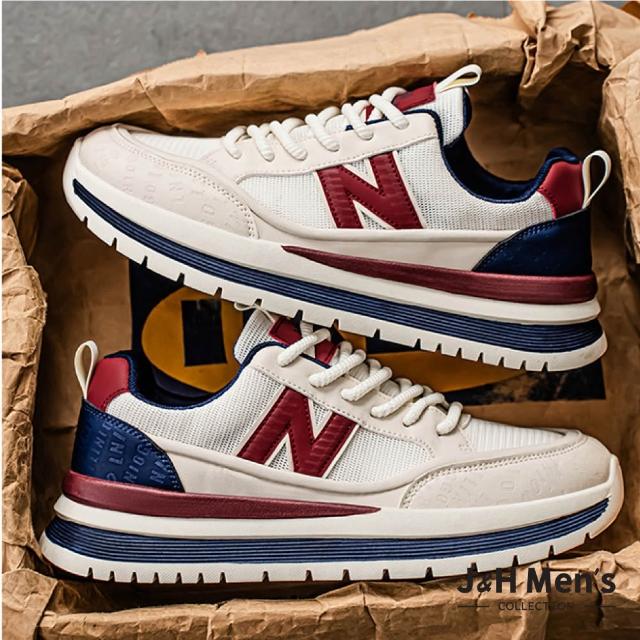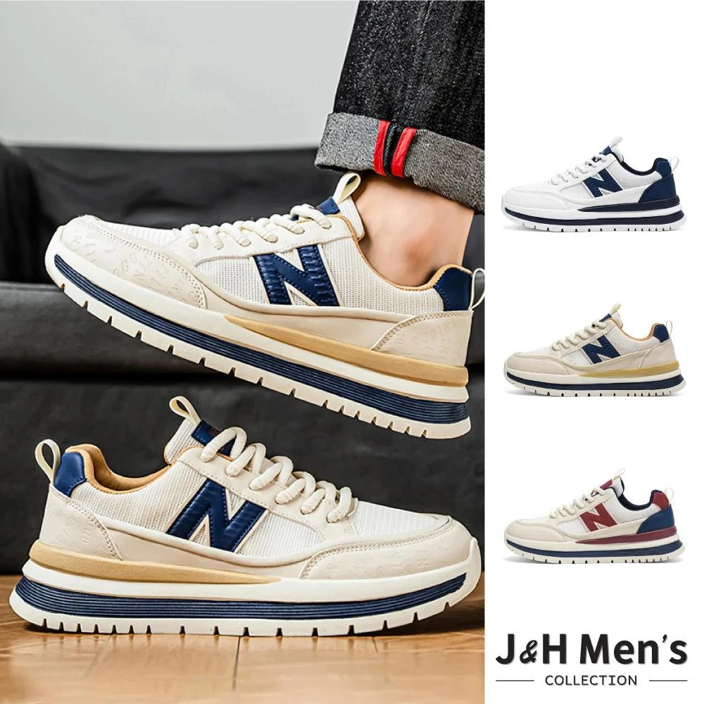J&H collection男款透氣網布拼接運動鞋 休閒鞋 慢跑鞋 (米黃/藍/紅)