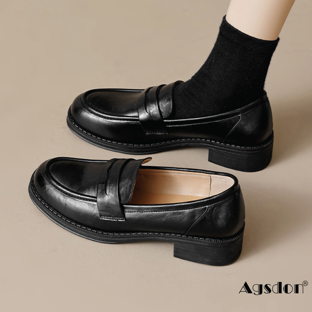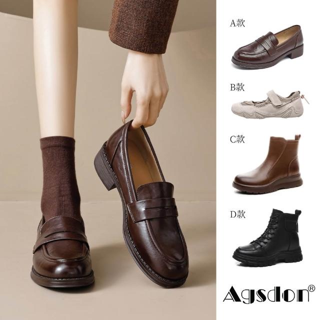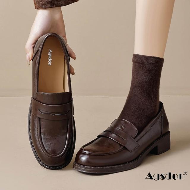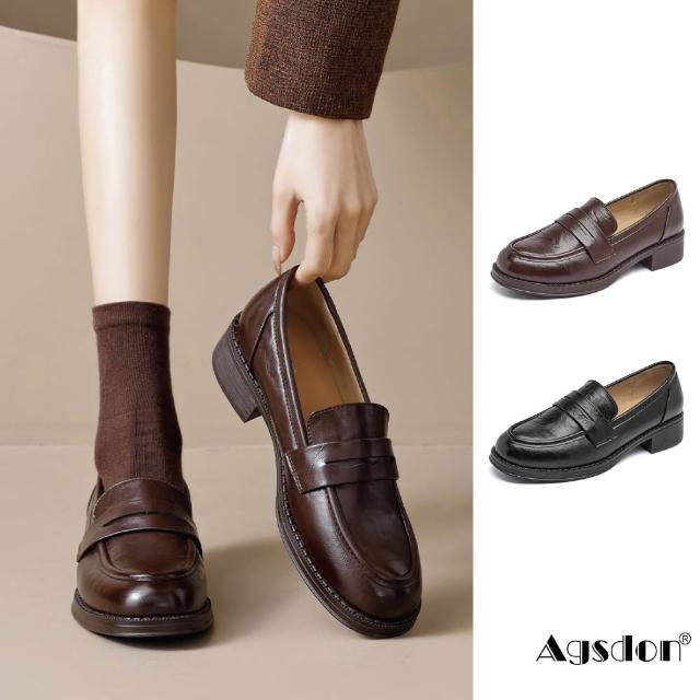 Agsdon古典英倫風粗跟簡約皮鞋 樂福鞋 皮靴 共四款(黑色 / 棕色)