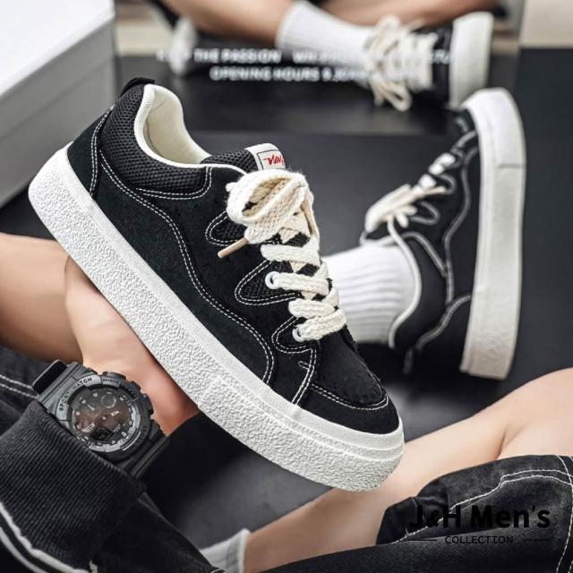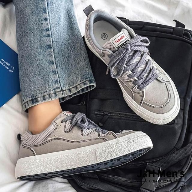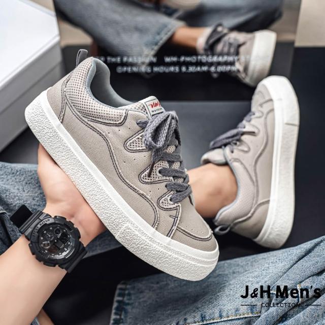 J&H collection多色潮流百搭縫線休閒鞋板鞋 帆布鞋(灰 / 藍 / 紅 / 黑)