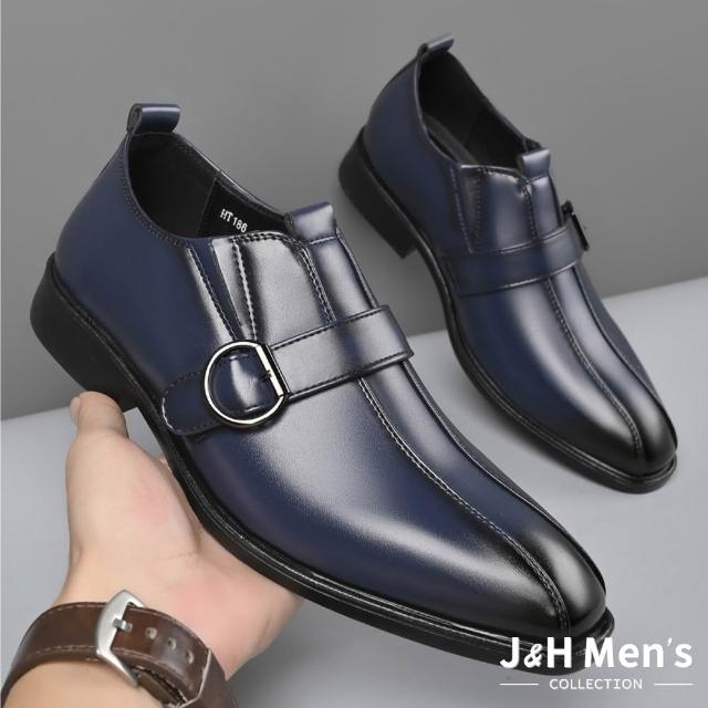 J&H collection男士商務風格亮澤牛皮皮鞋 樂福鞋(黑色/棕色/藍色)