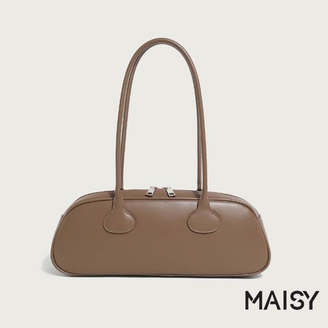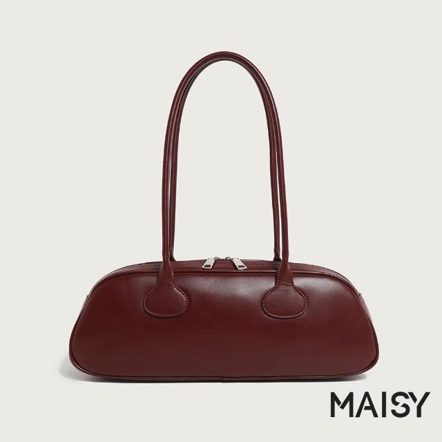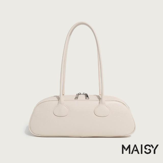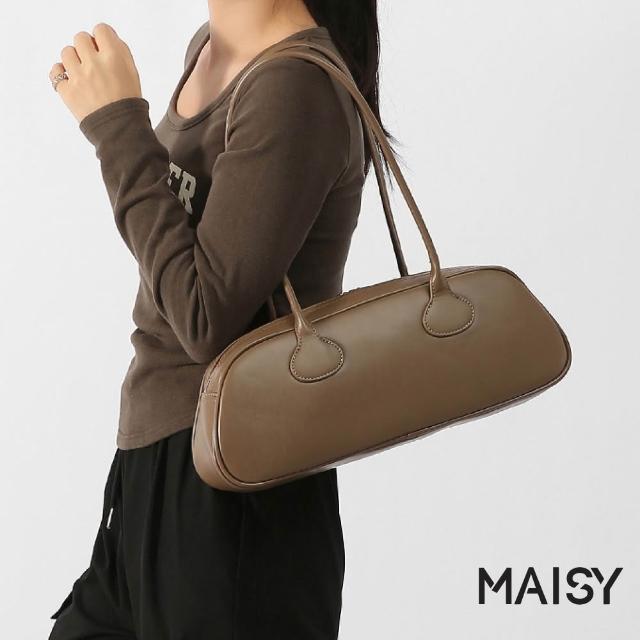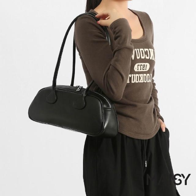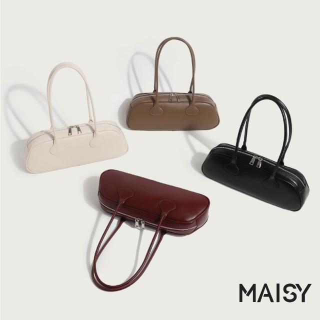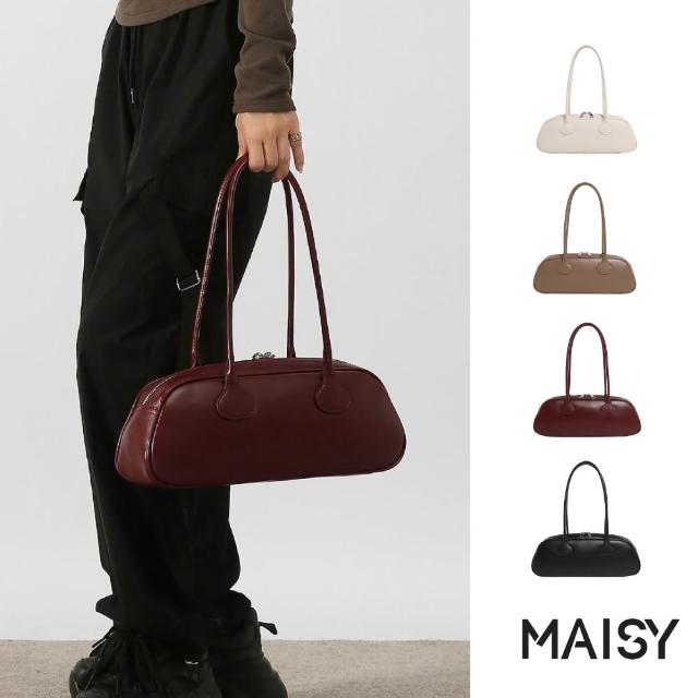 MAISY韓系復古簡約皮革單肩包 手提包 法棍包(米白/卡其/酒紅/黑)