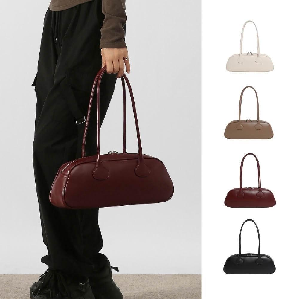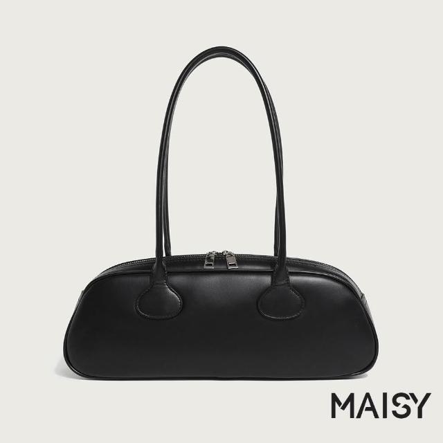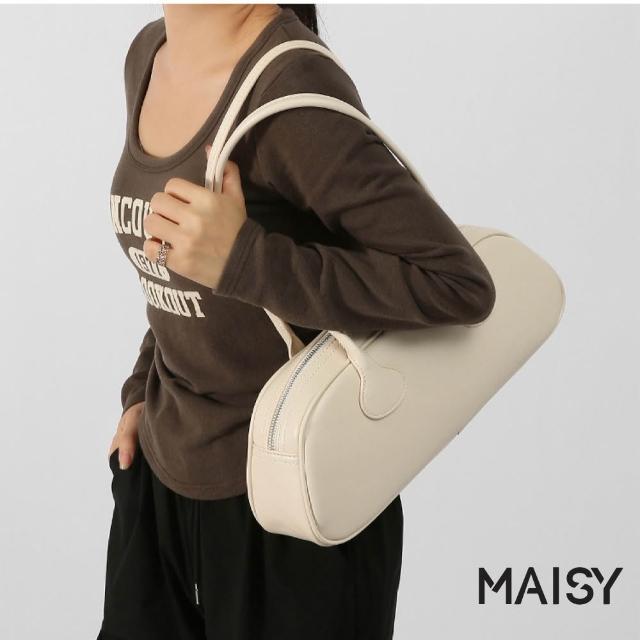 MAISY韓系復古簡約皮革單肩包 手提包 法棍包(米白/卡其/酒紅/黑)