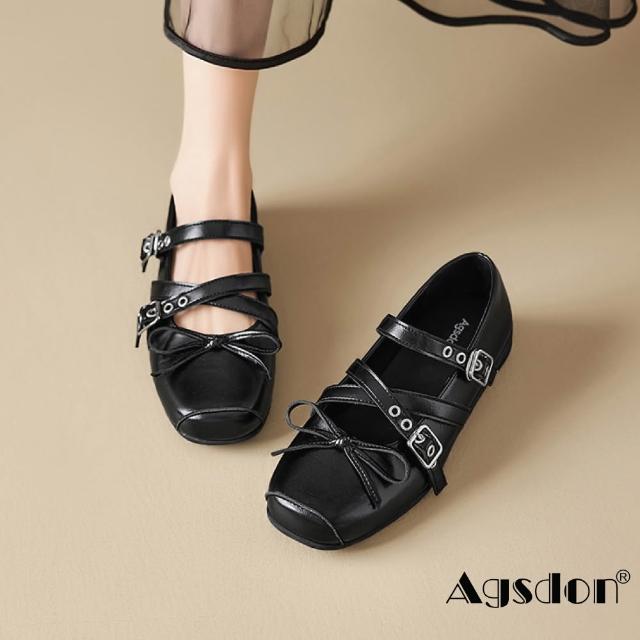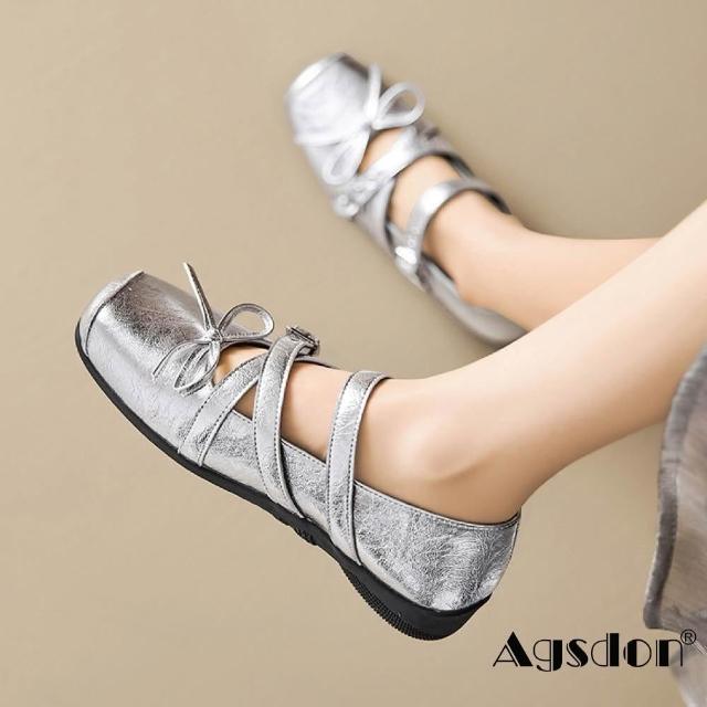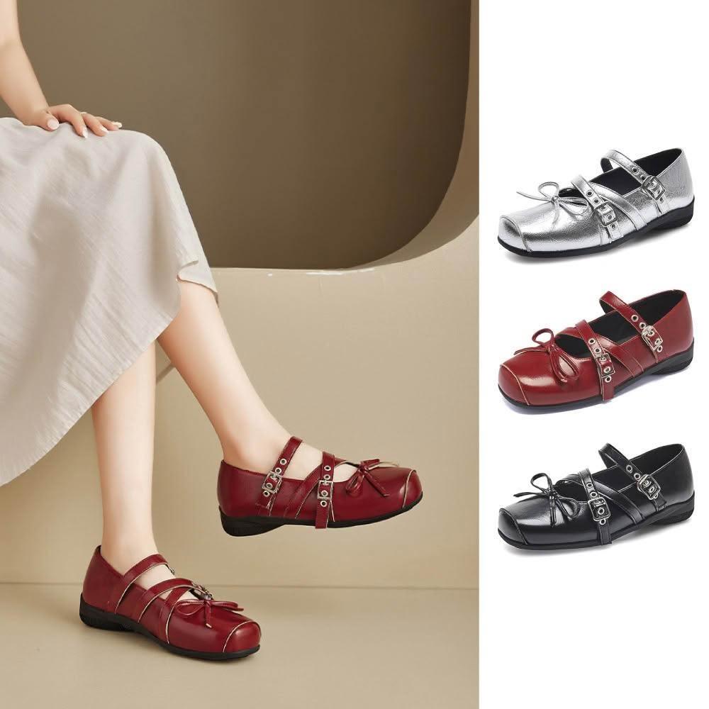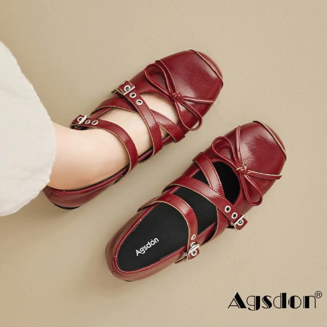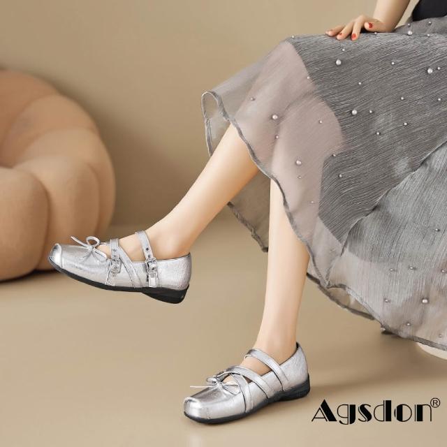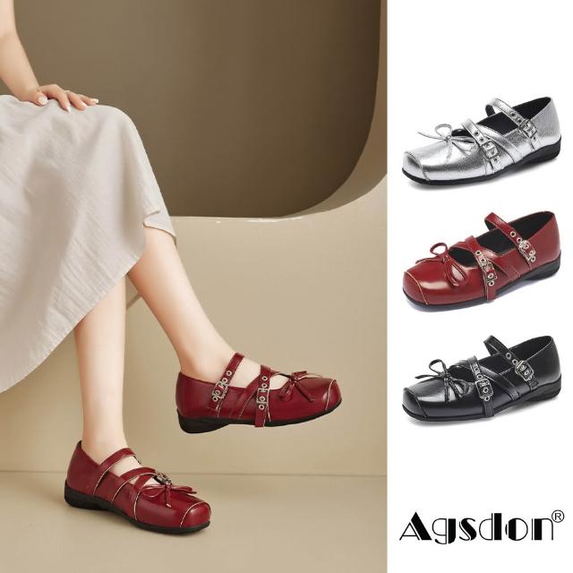 Agsdon法式復古個性亮皮平底方頭瑪麗珍鞋 小皮鞋(銀色/紅色/黑色)