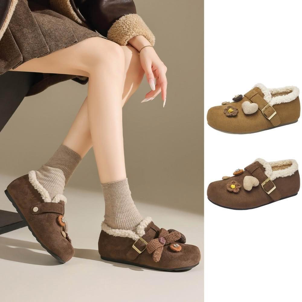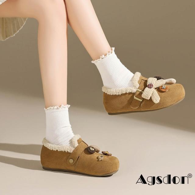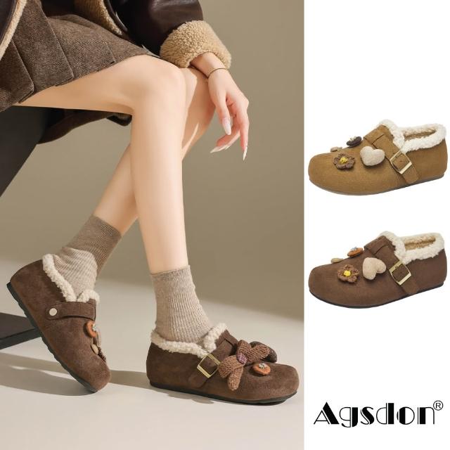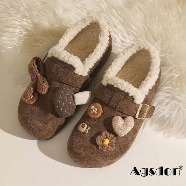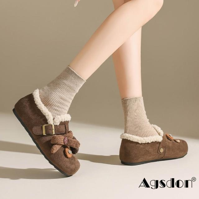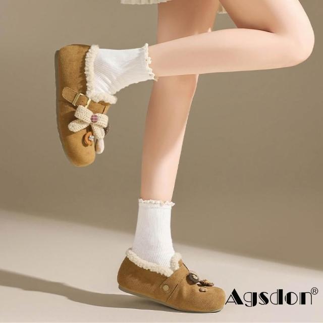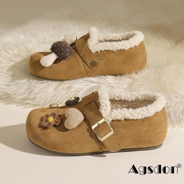 Agsdon可愛復古厚底加絨保暖樂福鞋 勃肯鞋(咖色/焦糖色)