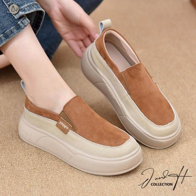J&H collection舒適百搭厚底增高真皮軟底懶人鞋 休閒鞋(豹紋/黃/紅/棕)