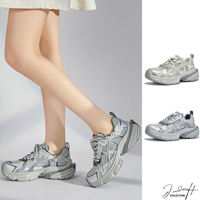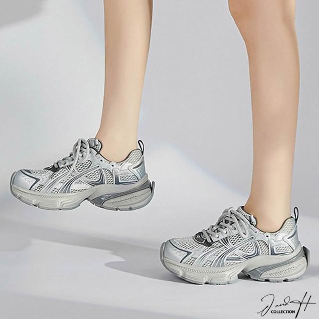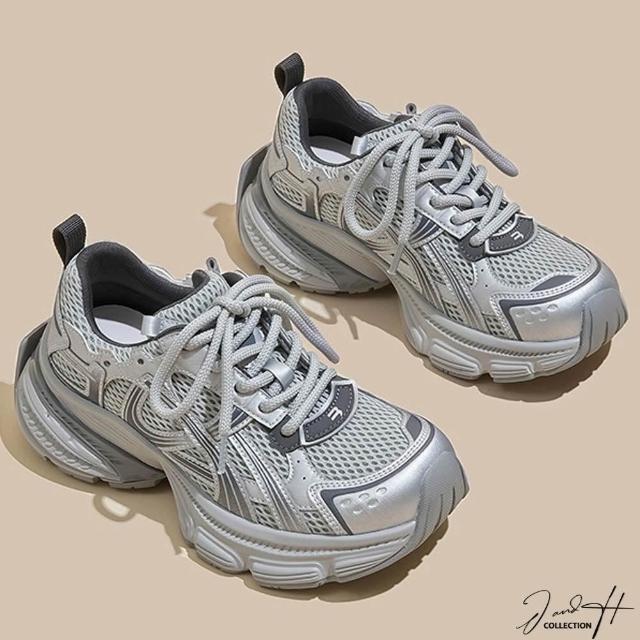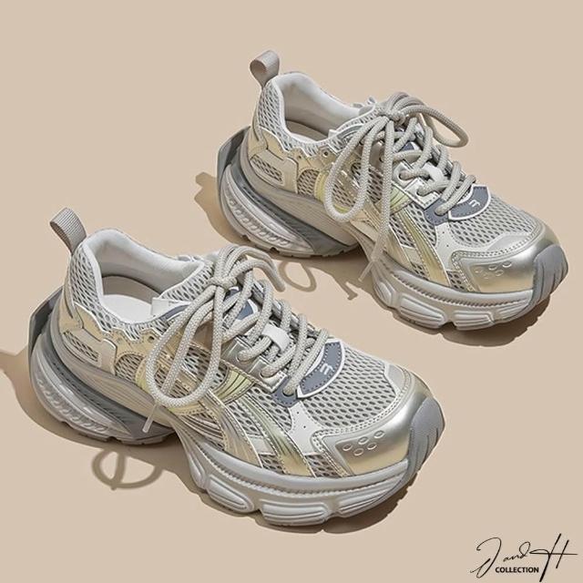 J&H collection新款百搭拼接增高厚底休閒鞋 老爹鞋 ( 卡其色 / 銀色 )