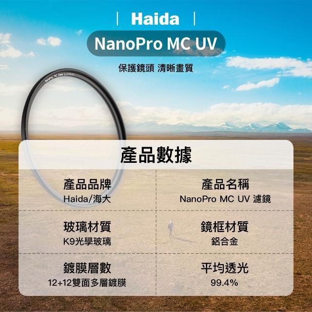 Haida海大 NanoPro系列 UV濾鏡 保護鏡 12+12雙面多層鍍膜 透光率99.4% K9光學玻璃 台灣總代理