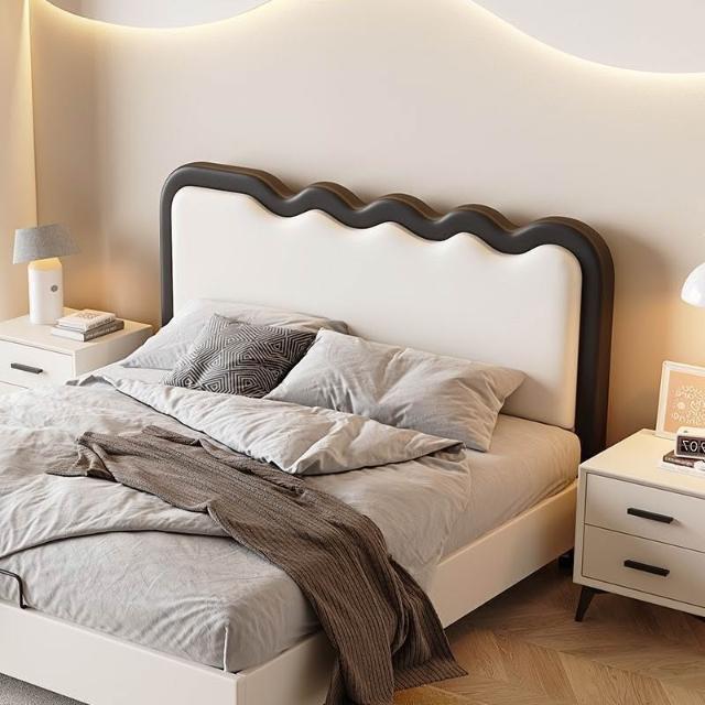 漣漪法式床頭板單買奶油風新款實木床頭軟包簡約現代單個床頭