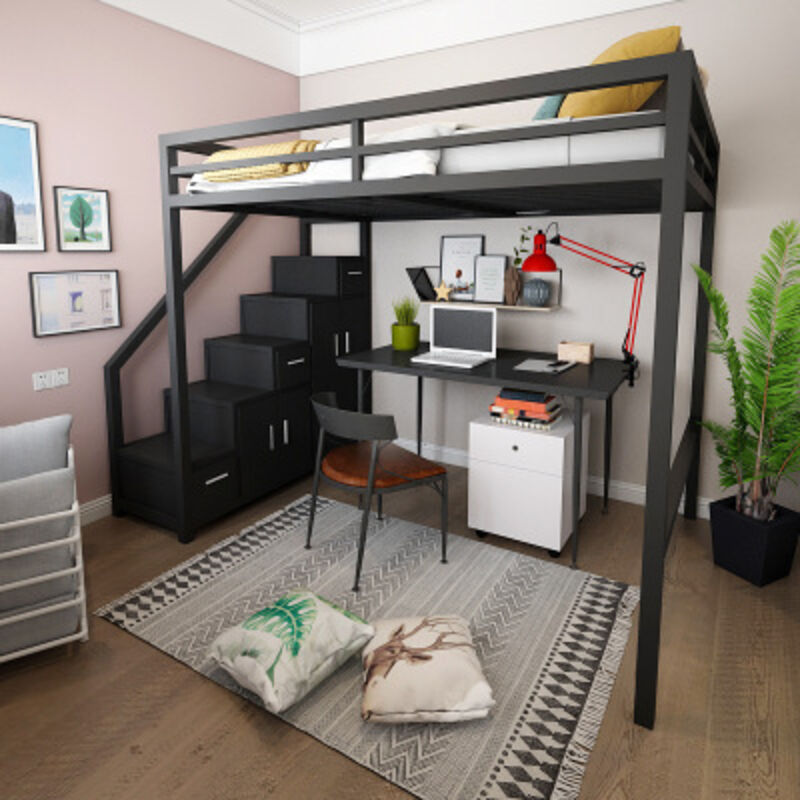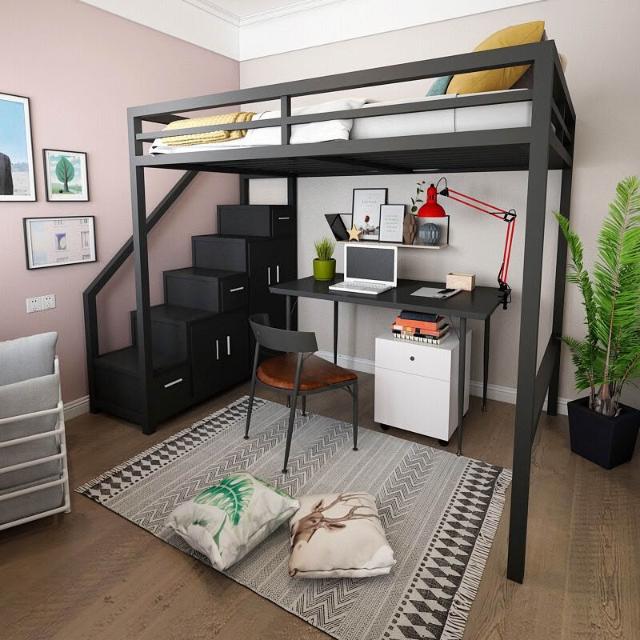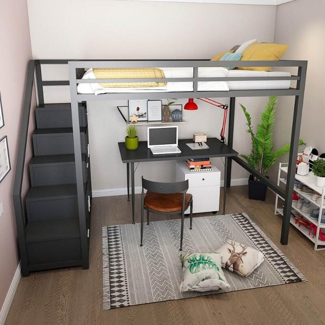 北歐鐵藝多功能高架床小戶型臥室上床下桌單身公寓省空間閣樓床架
