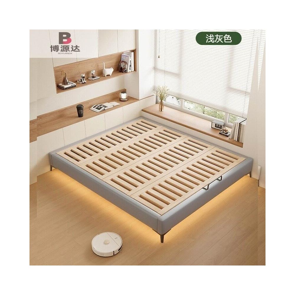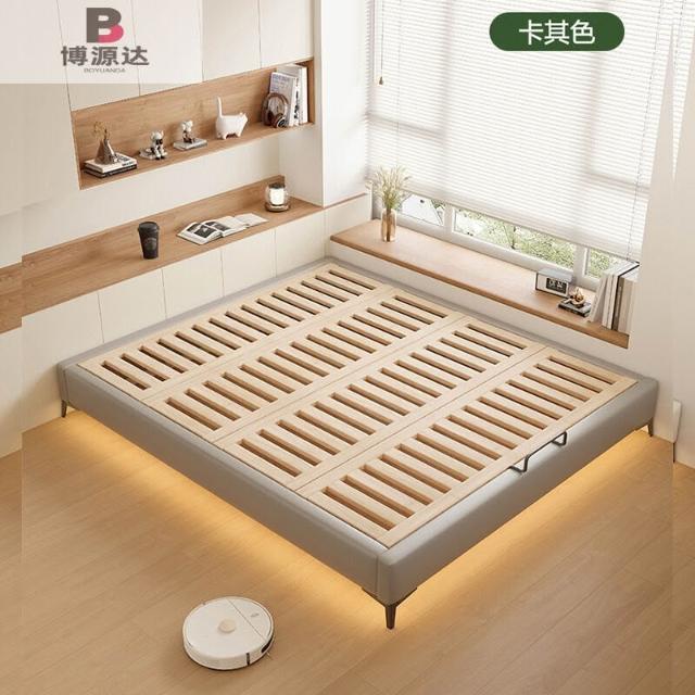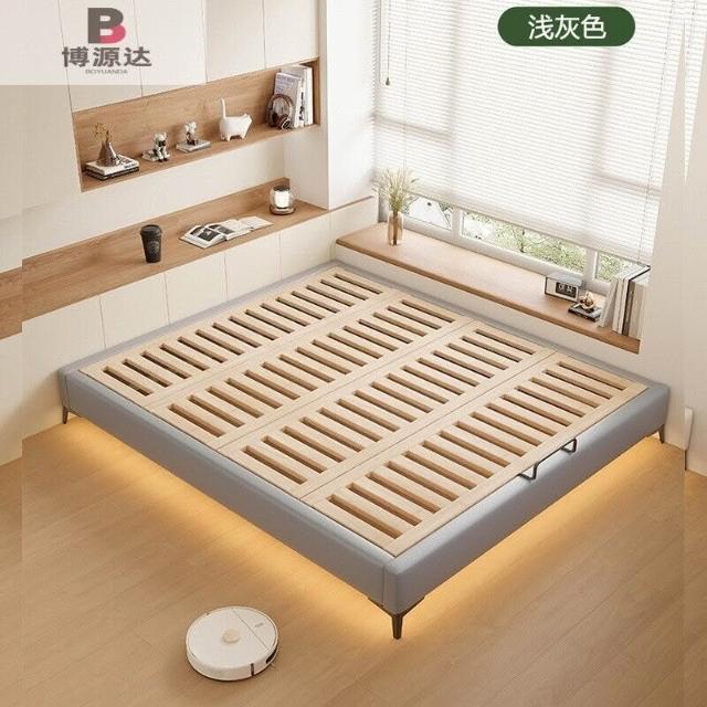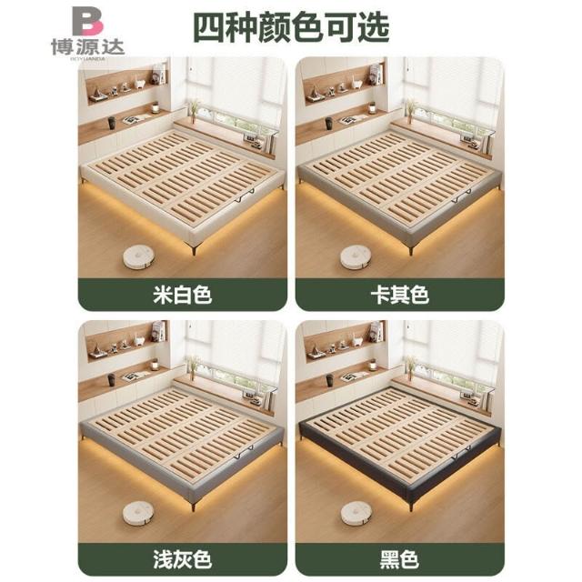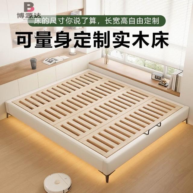 實木懸浮床加厚榉木無床頭床架榫卯排骨架簡約齊邊貓抓皮包榻榻米