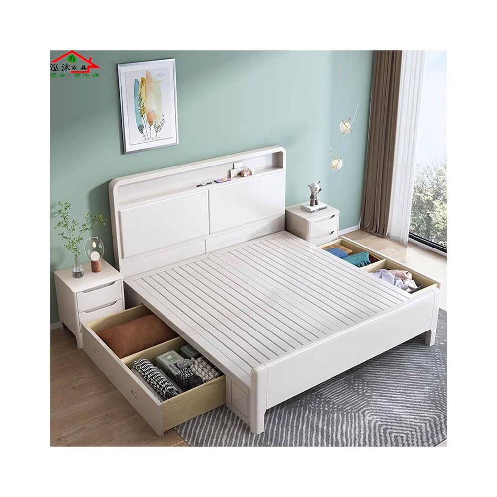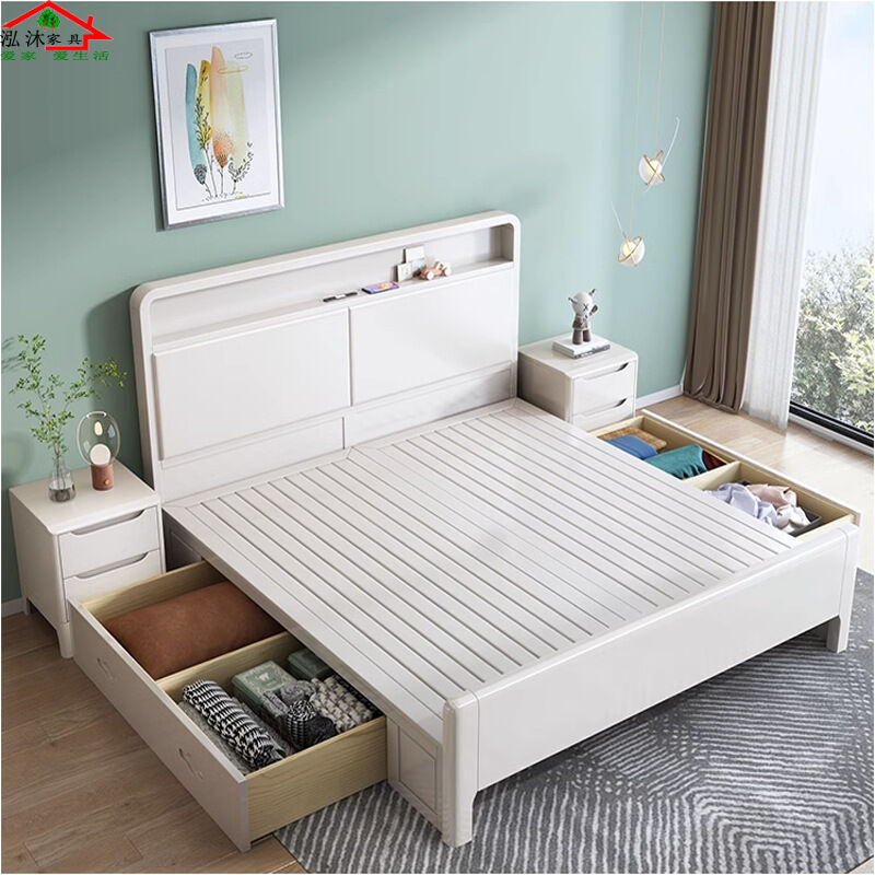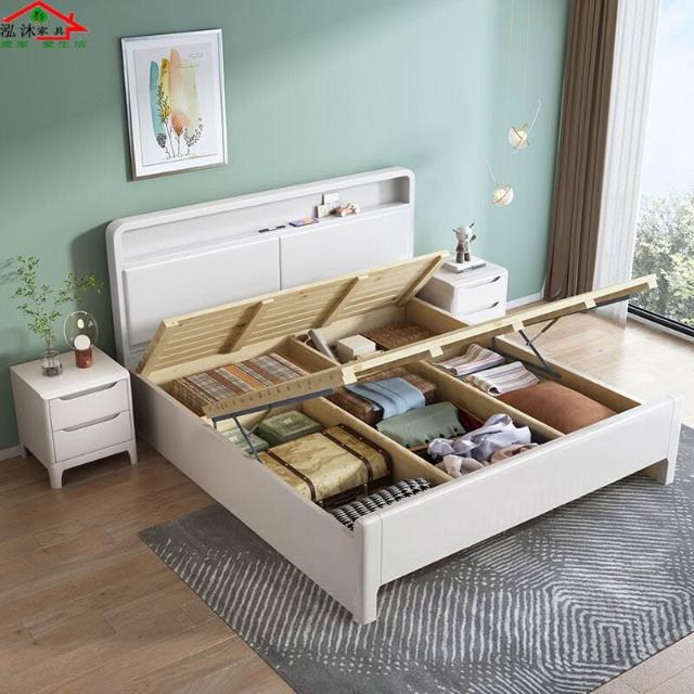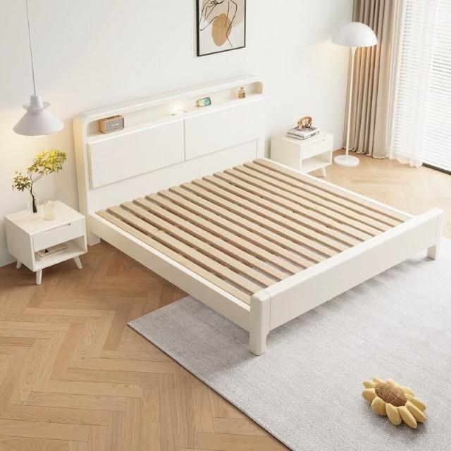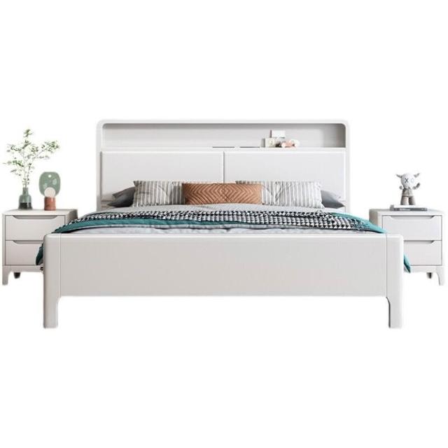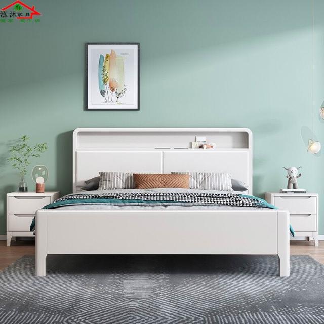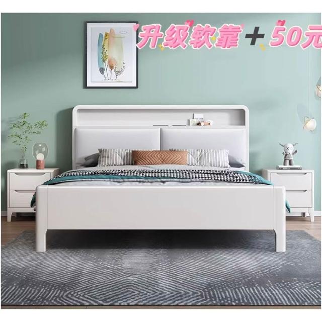 家用白色主臥1.8米雙人床北歐1.5米單人儲物一體床實木風USB夜燈