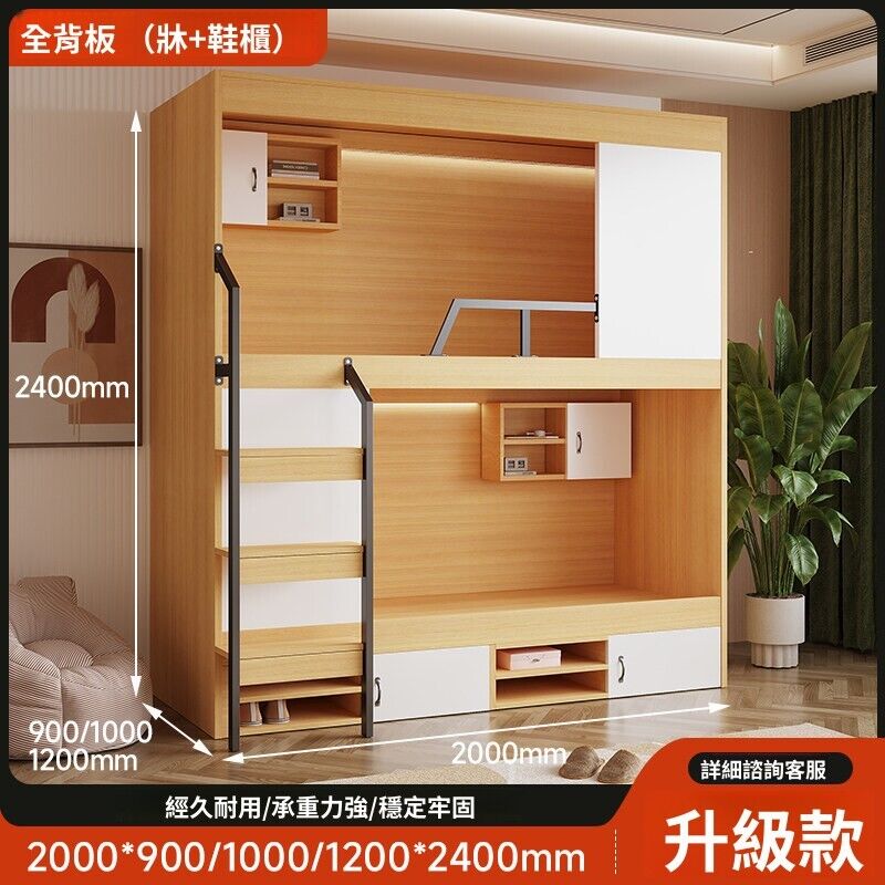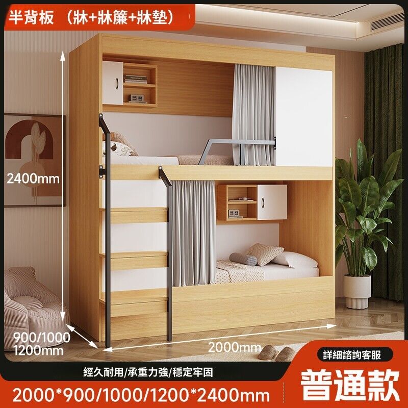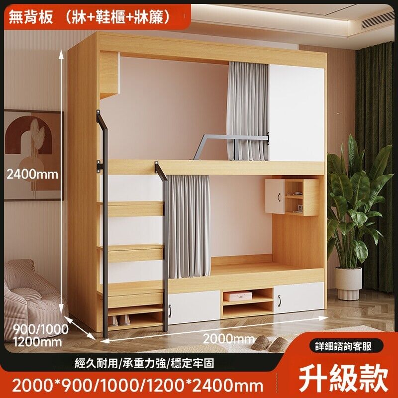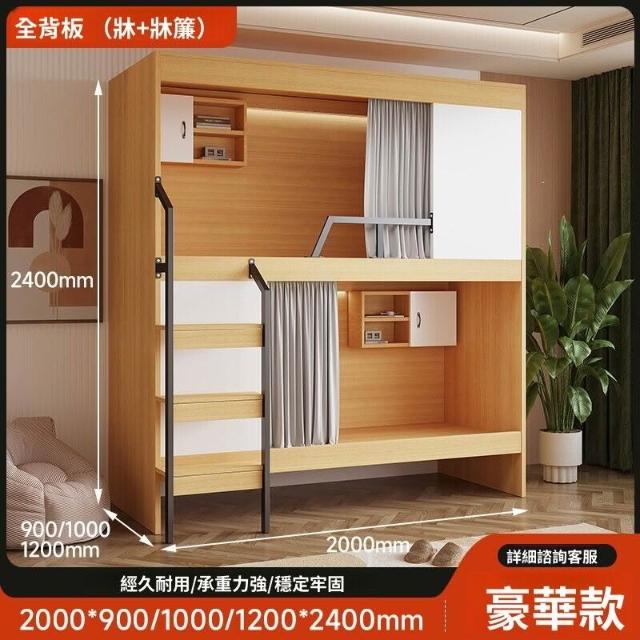 推拉門太空艙雙層床實木顆粒板青旅民宿公寓電競酒店多功能宿舍床