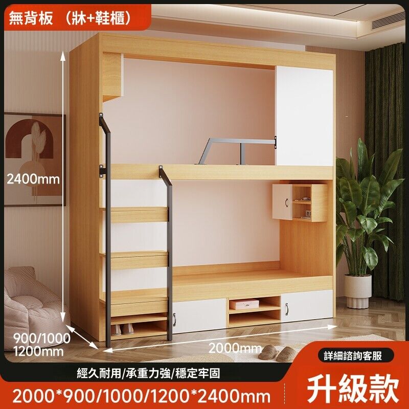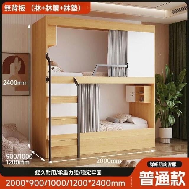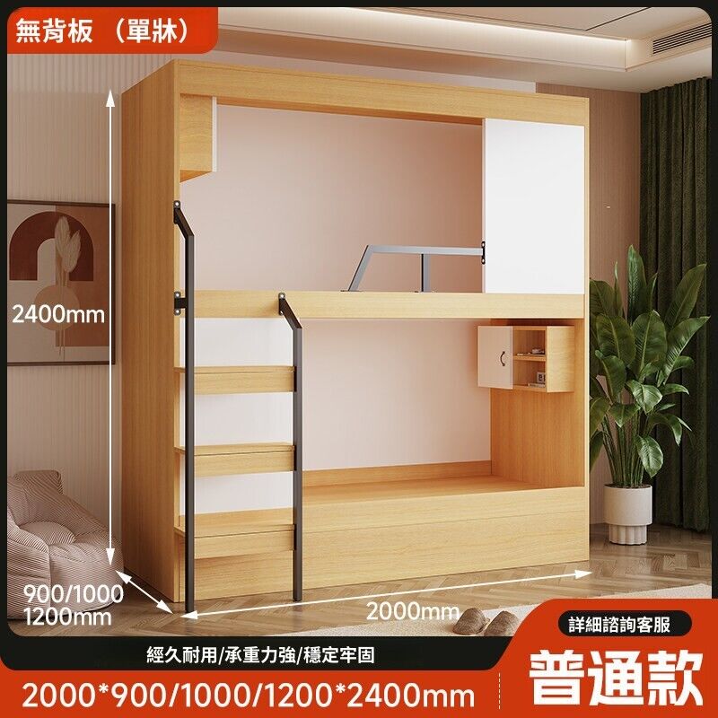 推拉門太空艙雙層床實木顆粒板青旅民宿公寓電競酒店多功能宿舍床