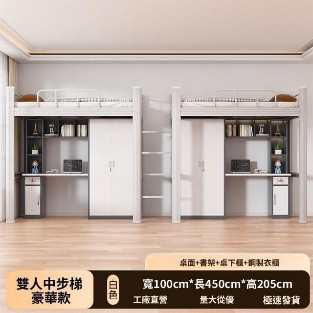 大學生鐵藝上床下桌員工宿舍鐵架床落地爬梯組合公寓床上下兩層床