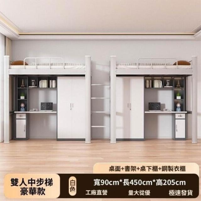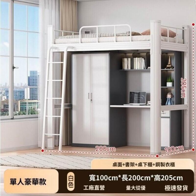 大學生鐵藝上床下桌員工宿舍鐵架床落地爬梯組合公寓床上下兩層床