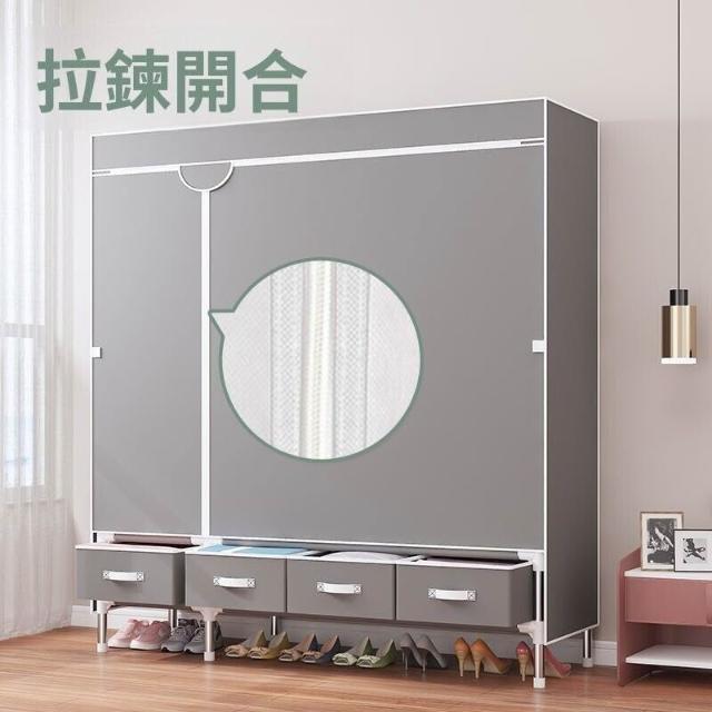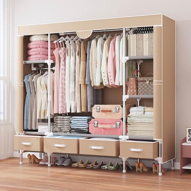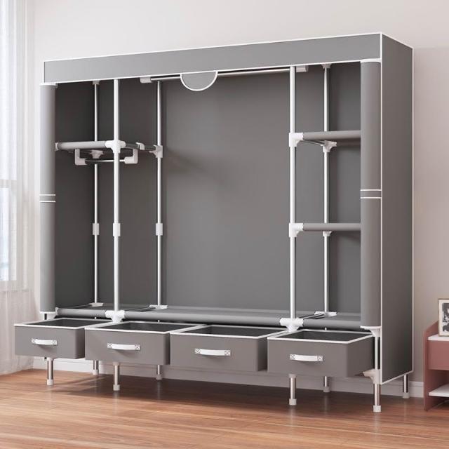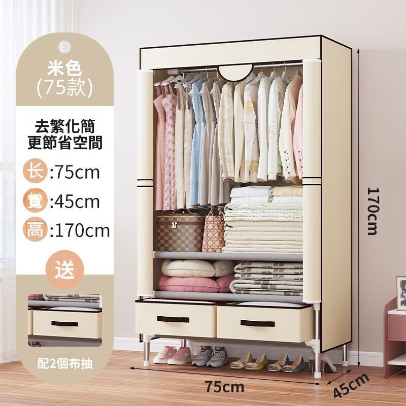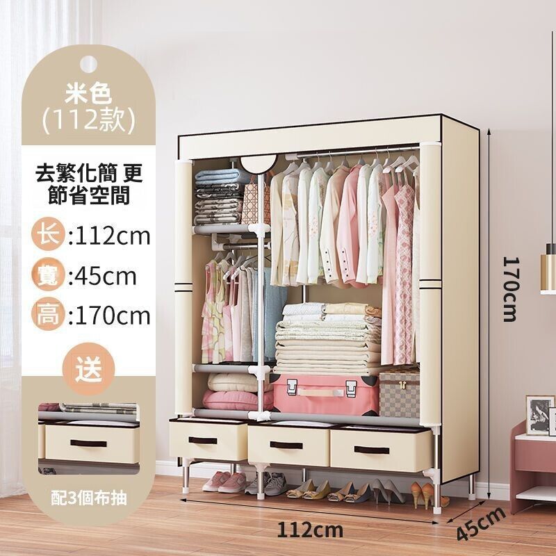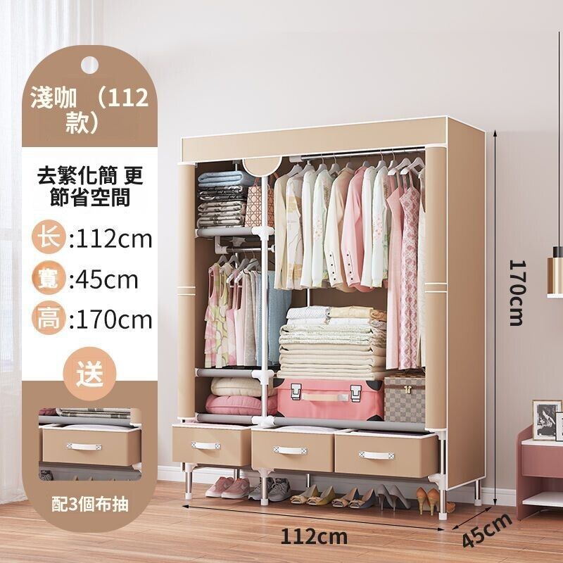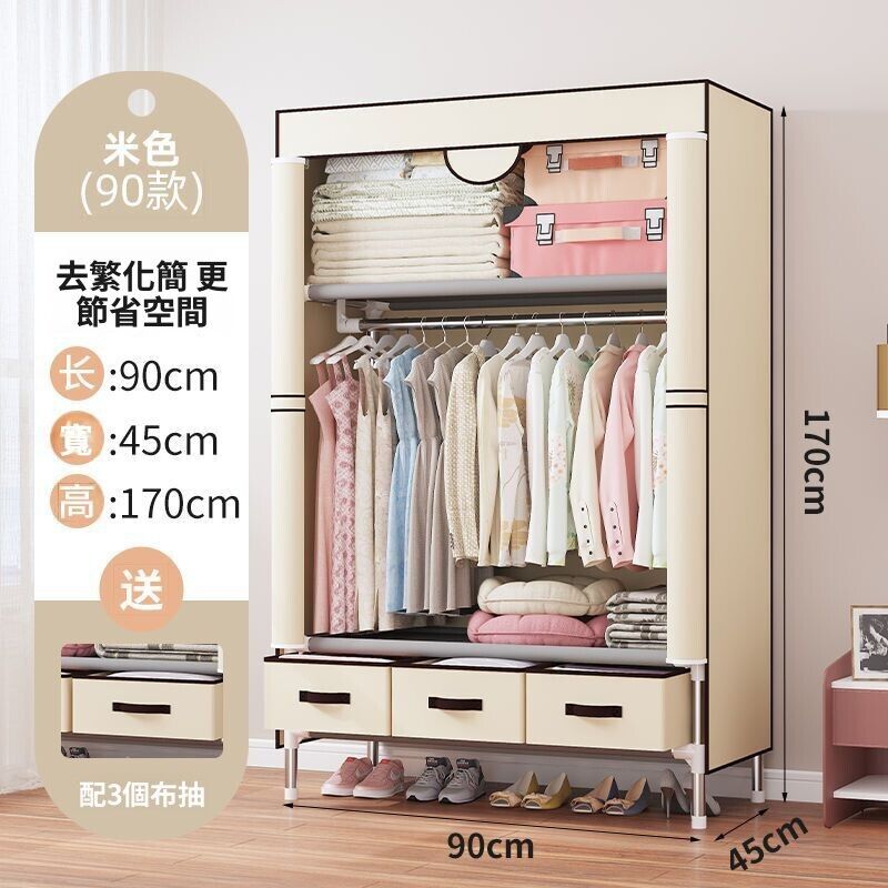 簡易衣櫃家用臥室出租房用現代經濟型簡約布衣櫃子鋼管收納掛衣櫥