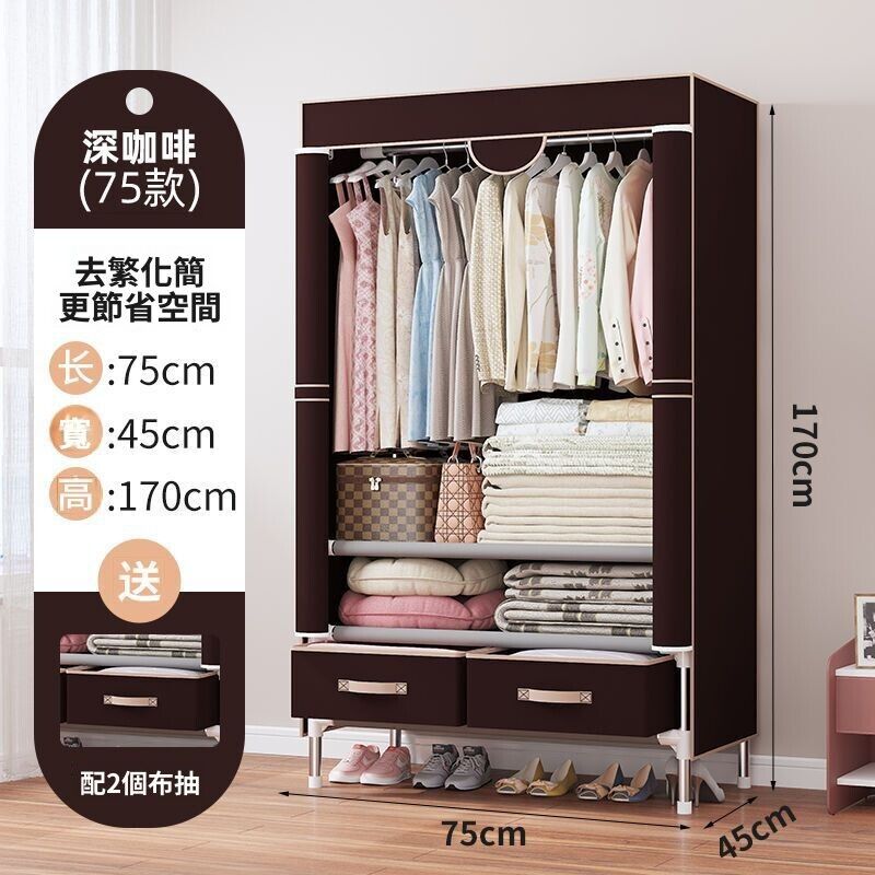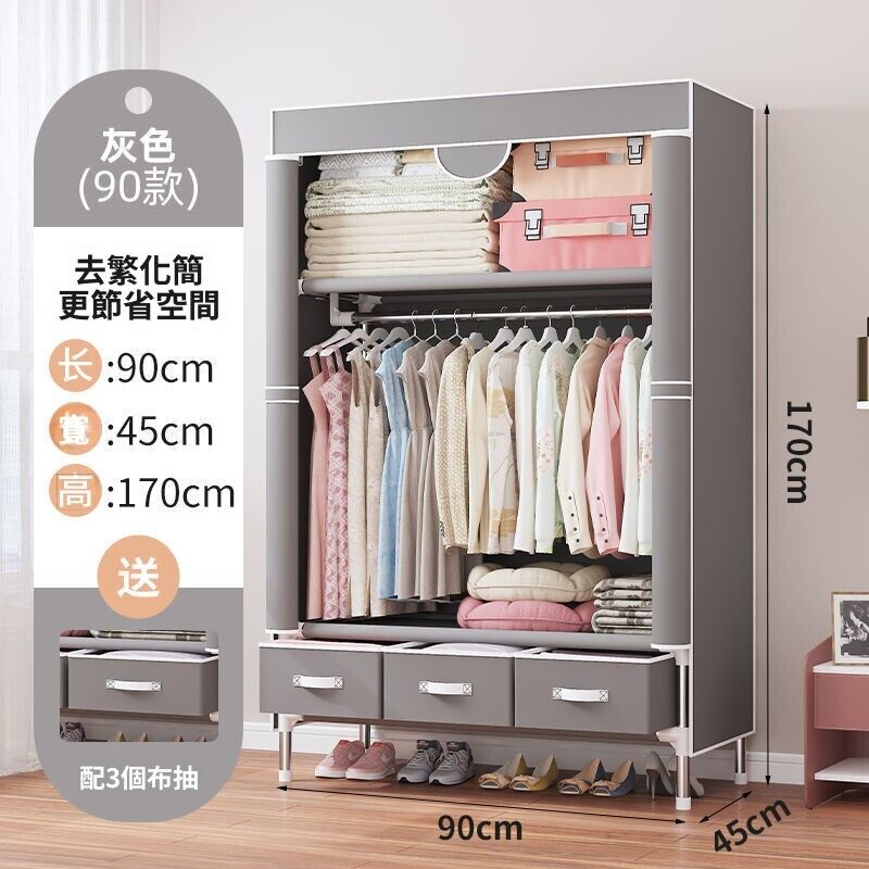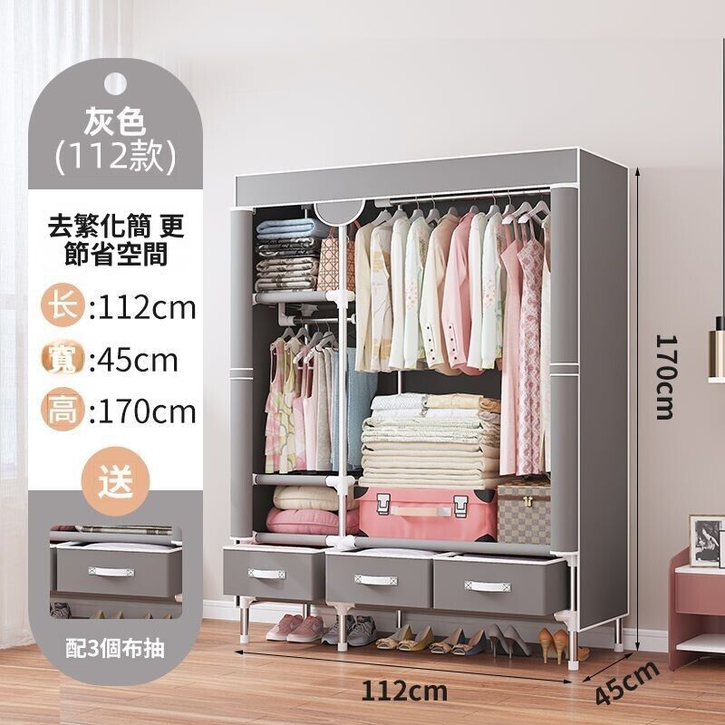 簡易衣櫃家用臥室出租房用現代經濟型簡約布衣櫃子鋼管收納掛衣櫥