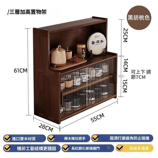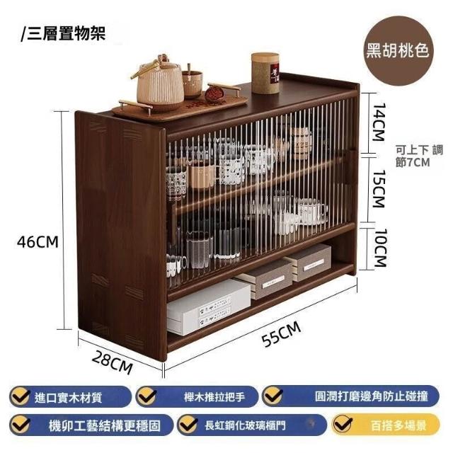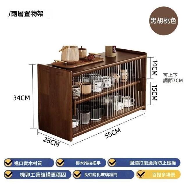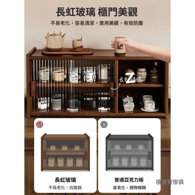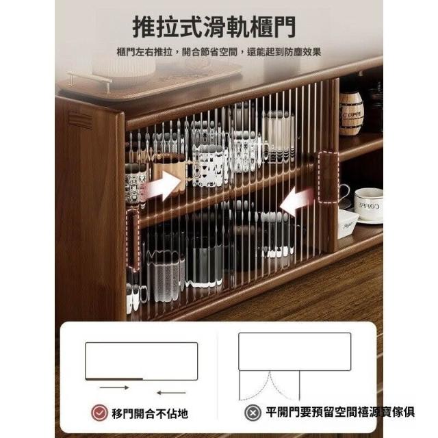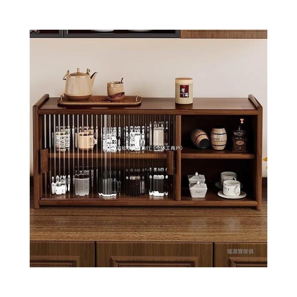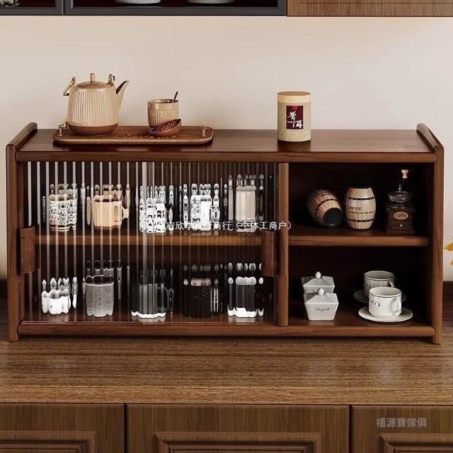 日式實木餐邊櫃桌面收納櫃櫥櫃碗櫃胡桃木色餐桌收納架臺面置物架