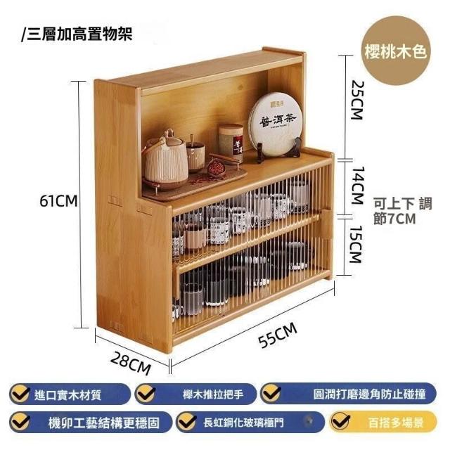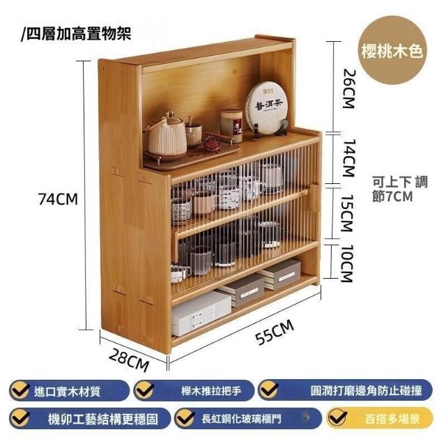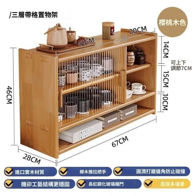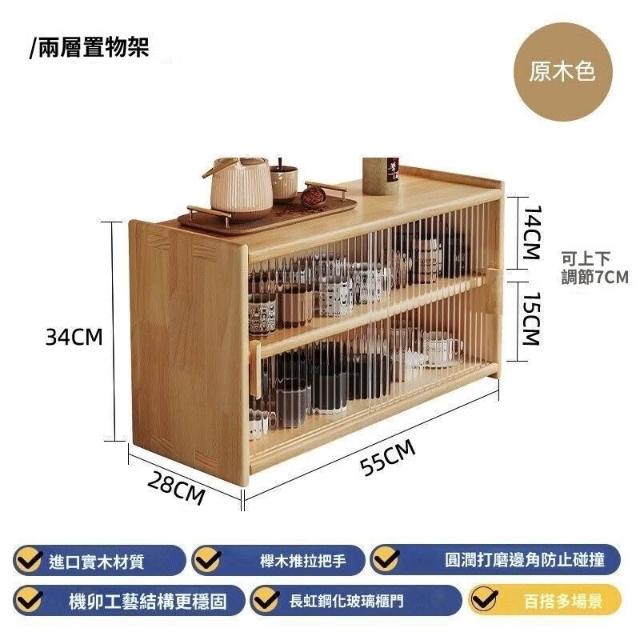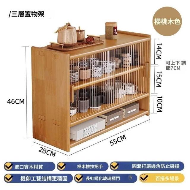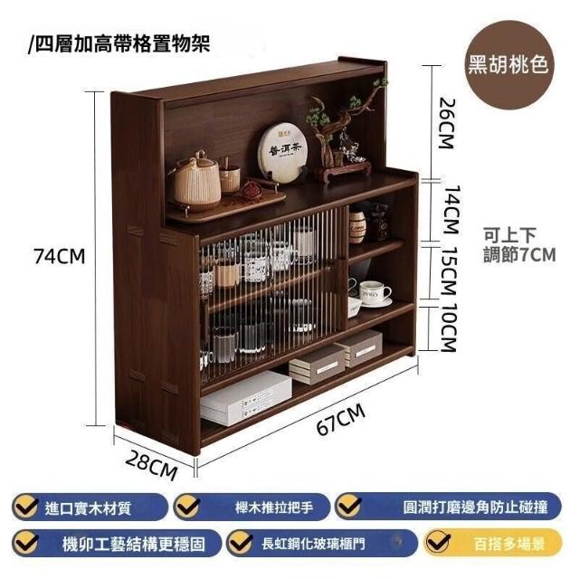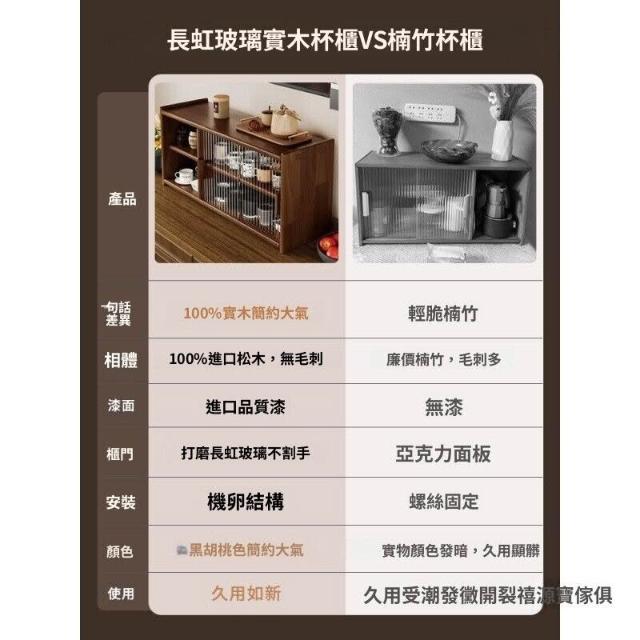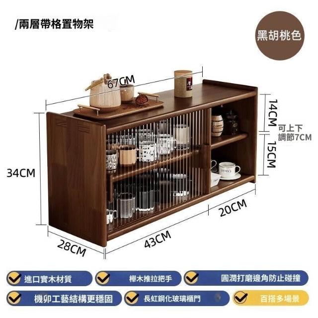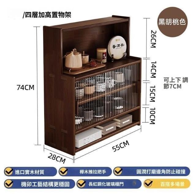 日式實木餐邊櫃桌面收納櫃櫥櫃碗櫃胡桃木色餐桌收納架臺面置物架