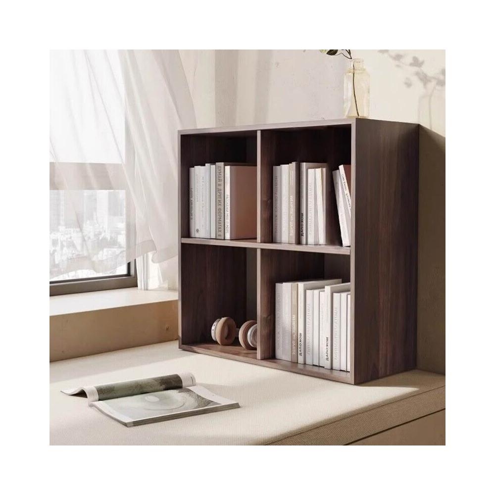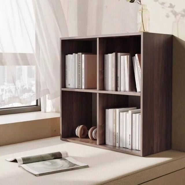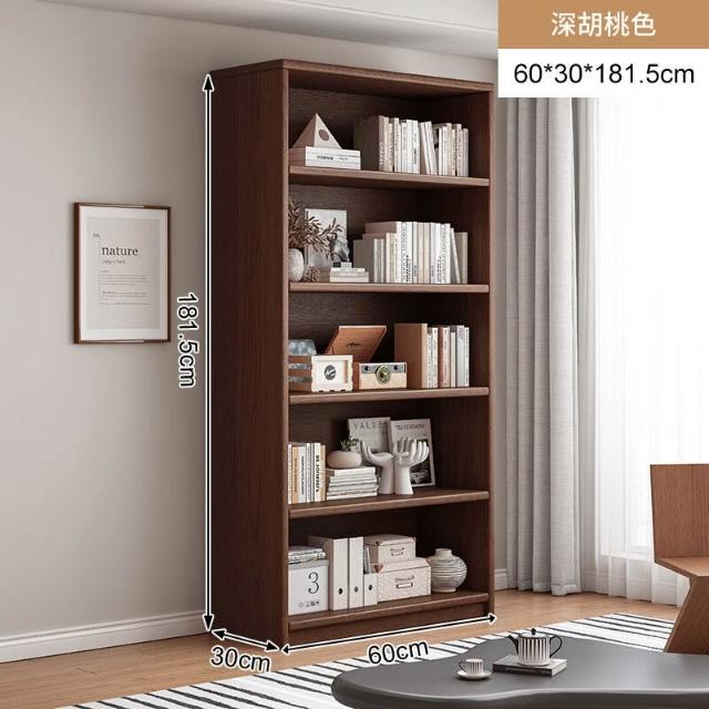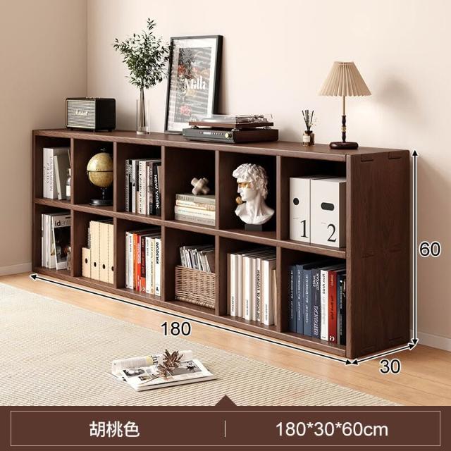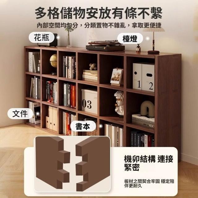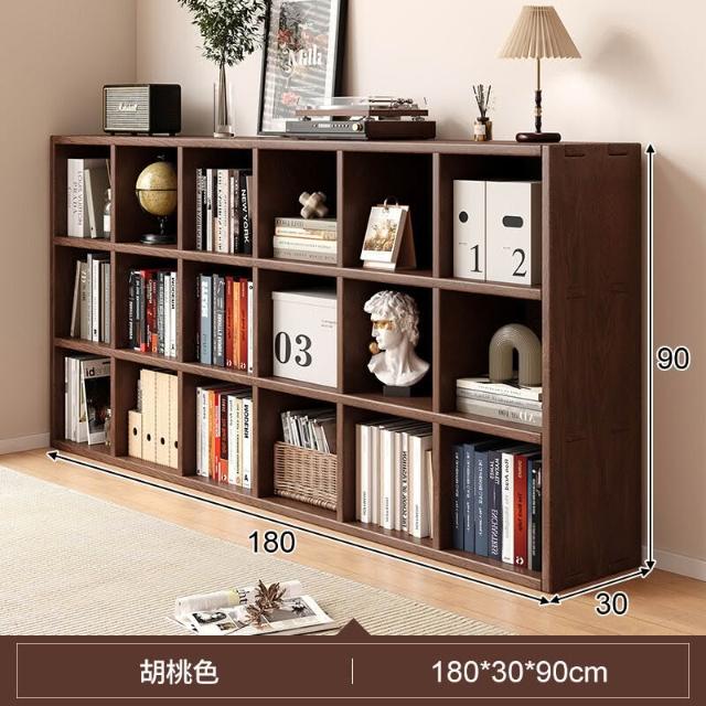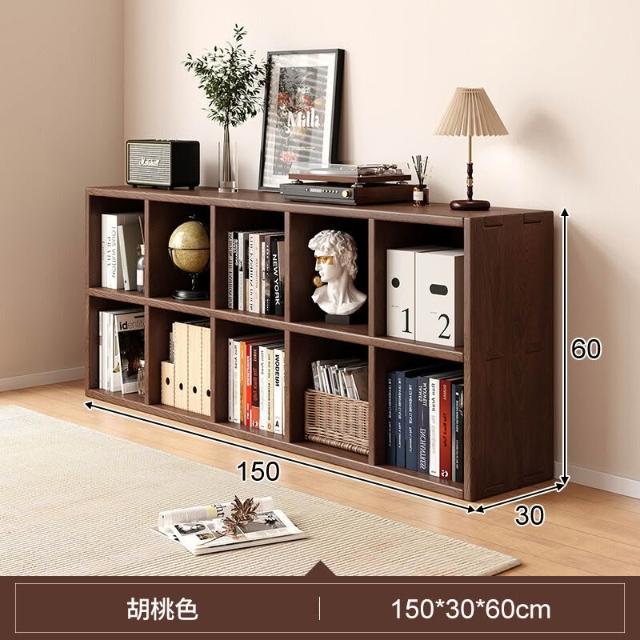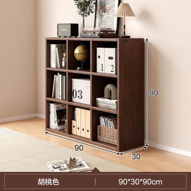 實木書架書桌組合落地胡桃木色書櫃自由組合格子儲物櫃客廳置物櫃