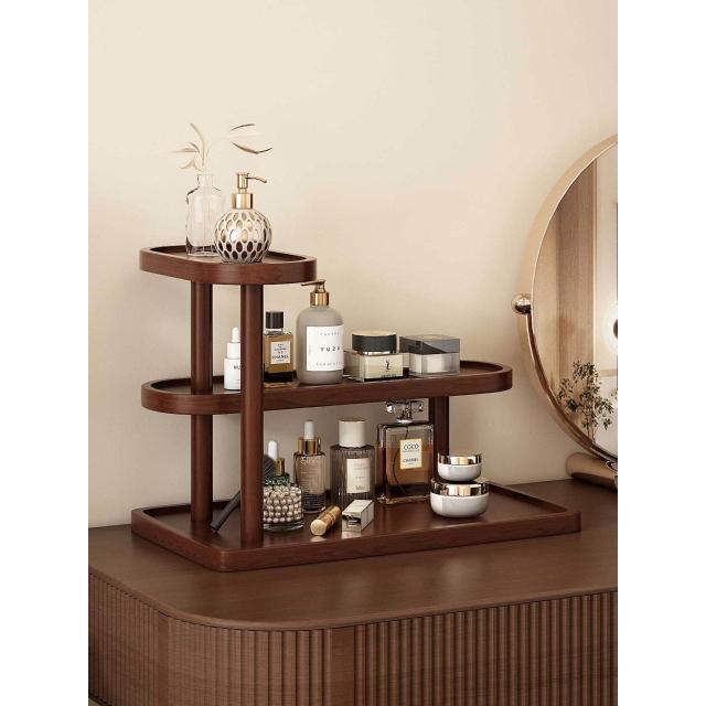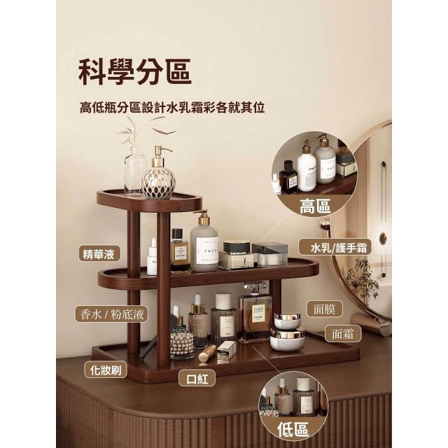 實木化妝品收納盒桌面口紅香水展示架梳妝臺桌上護膚品置物整理架