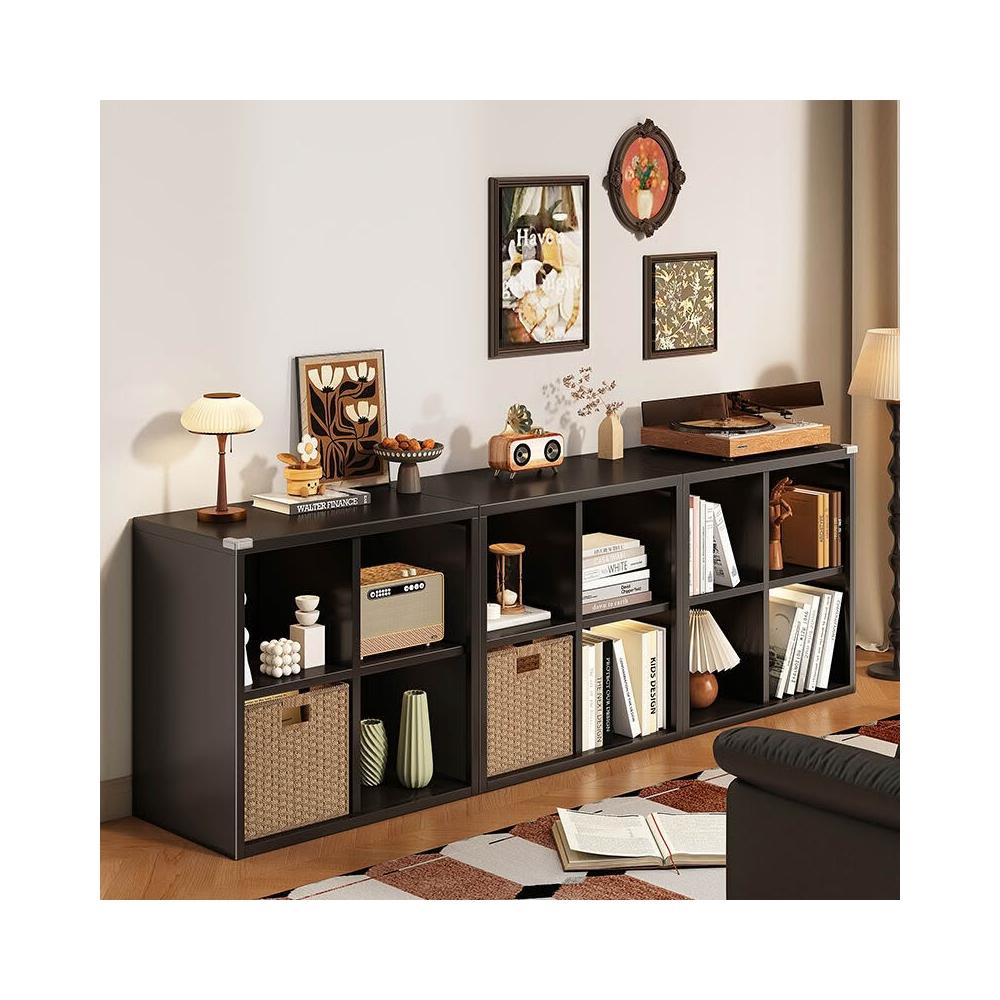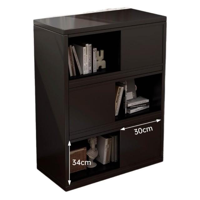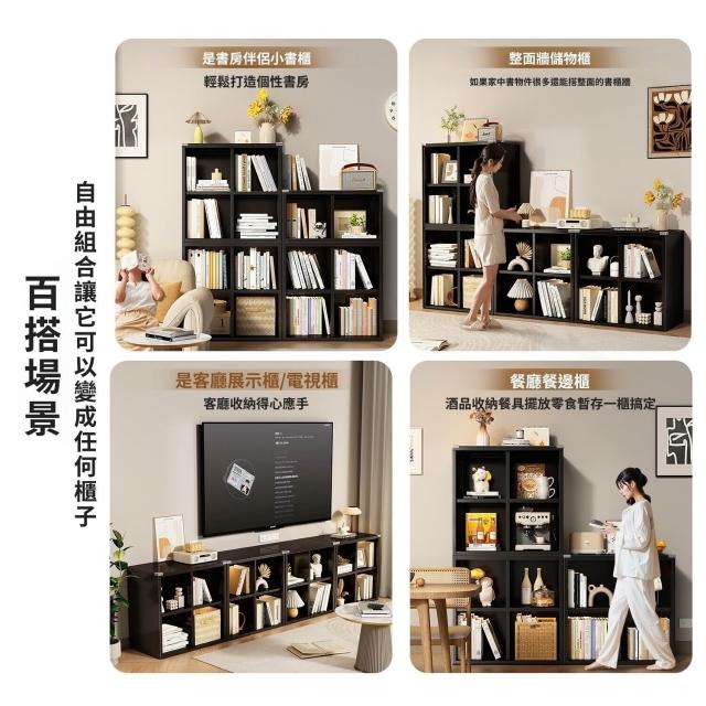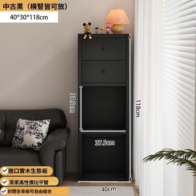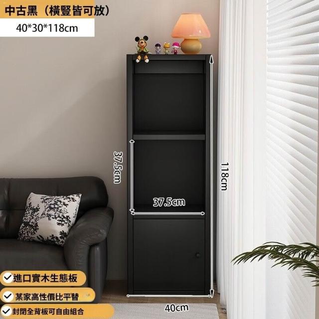 實木收納櫃黑色格子櫃書櫃儲物櫃一體靠墻置物櫃小櫃子客廳展示櫃