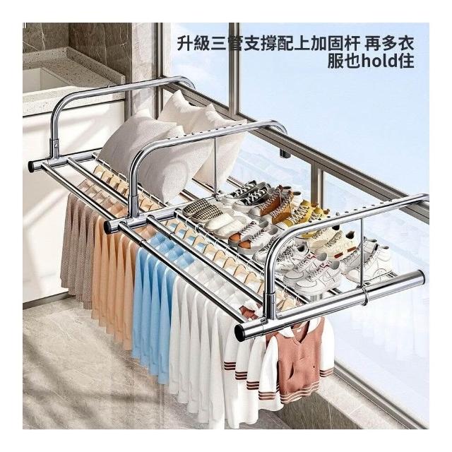 陽臺晾衣神器防盜窗護欄窗外晾衣架窗戶晾曬桿窗臺室外伸縮曬鞋架