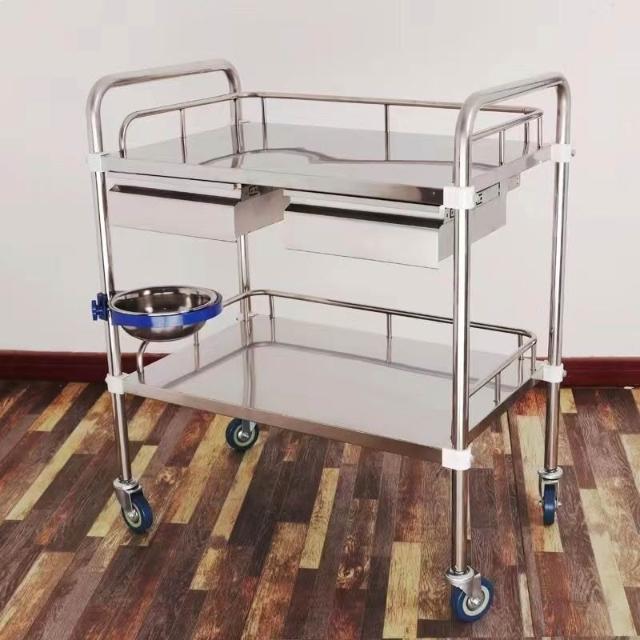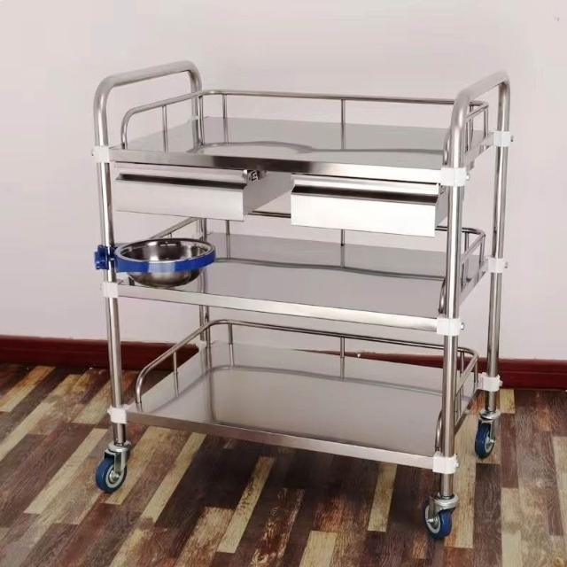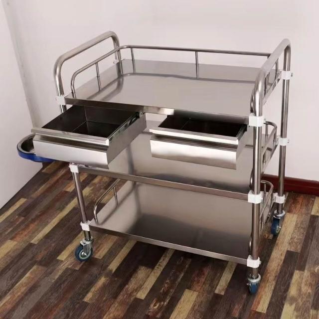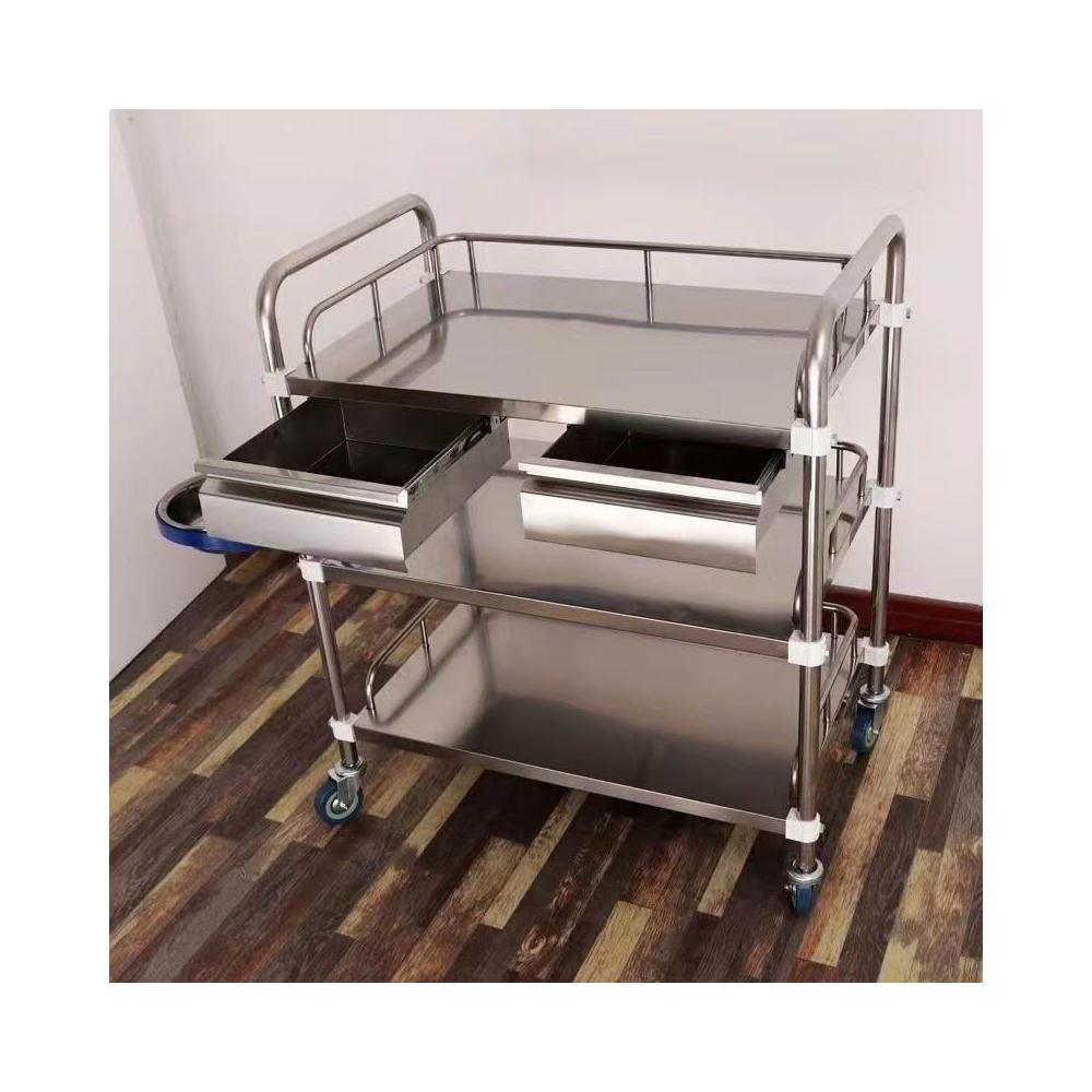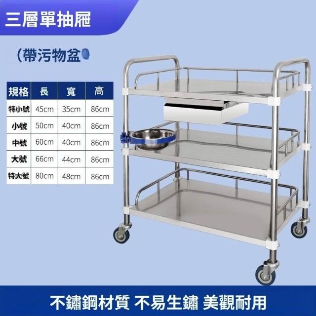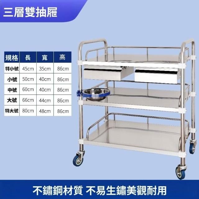 米期精品 加厚不銹鋼醫用小推車餐廳美容院擺攤三層二層輕便帶輪多層移動