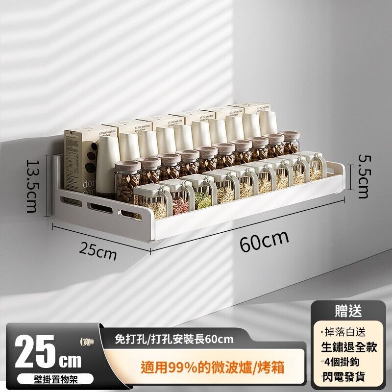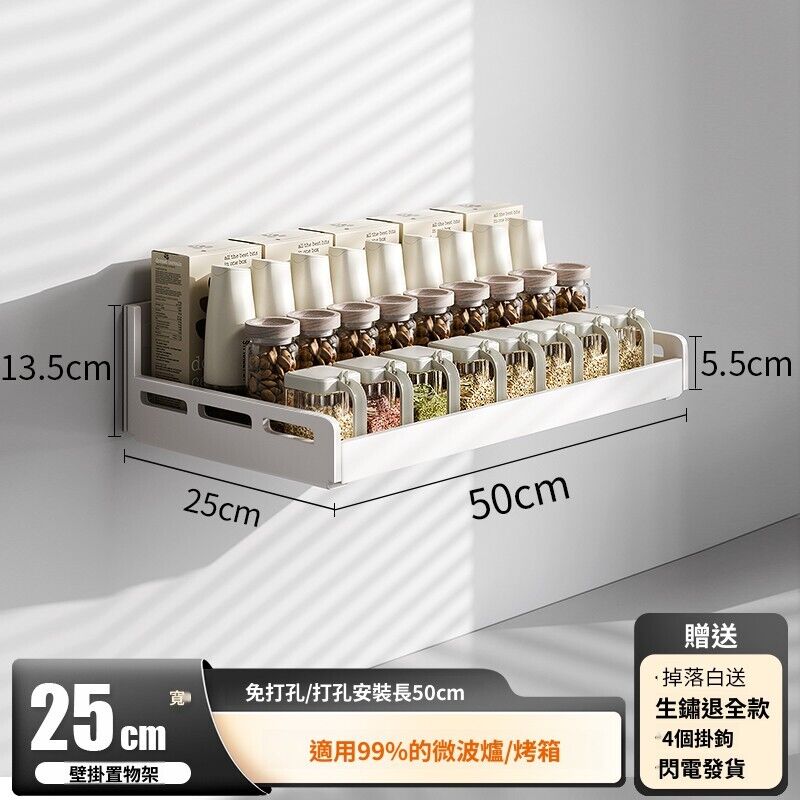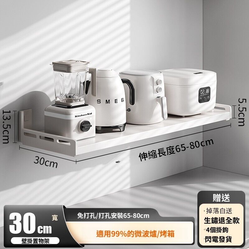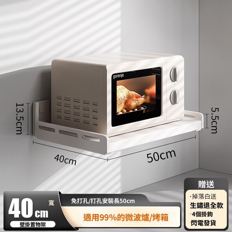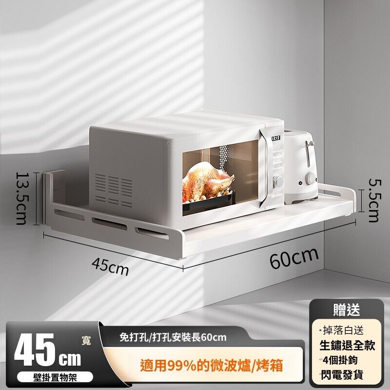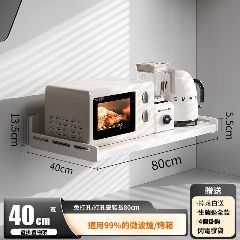米期精品 廚房置物架壁掛多功能墻上免打孔懸空放微波爐電飯煲電器收納架子
