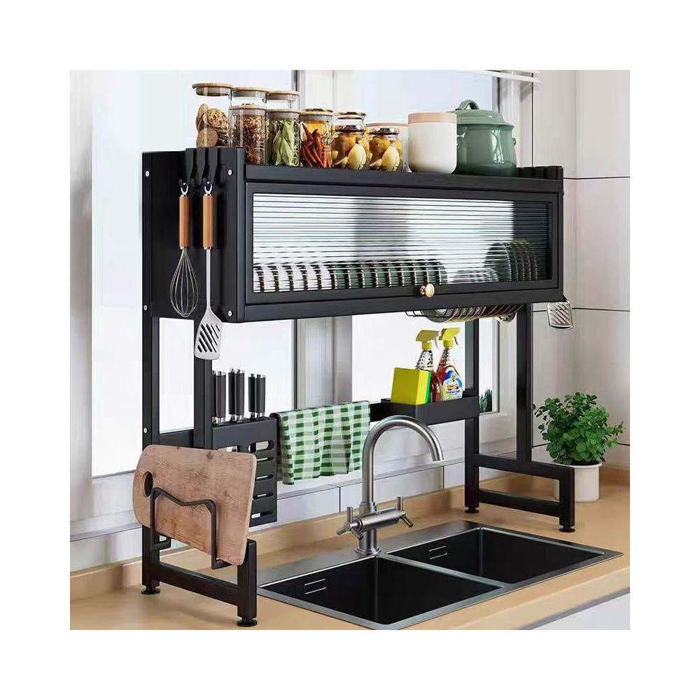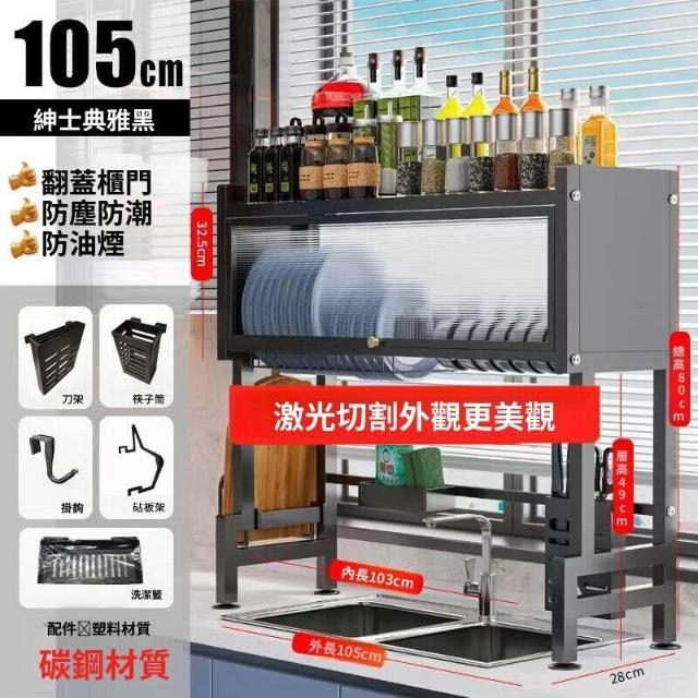 廚房水槽帶蓋置物架防塵帶櫃門碗盤調料收納架水池控水增高瀝水架