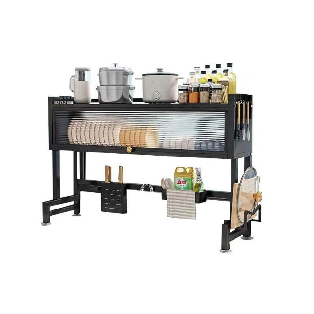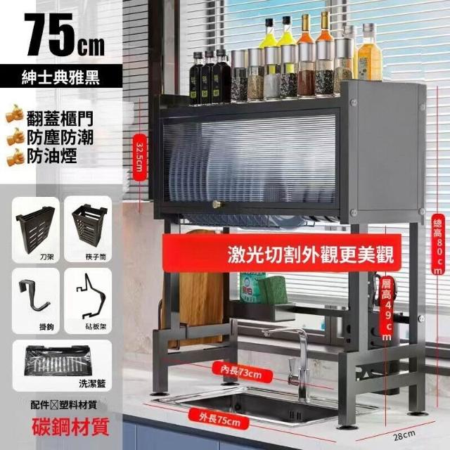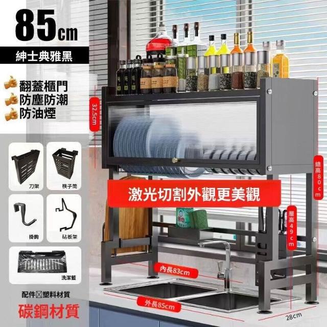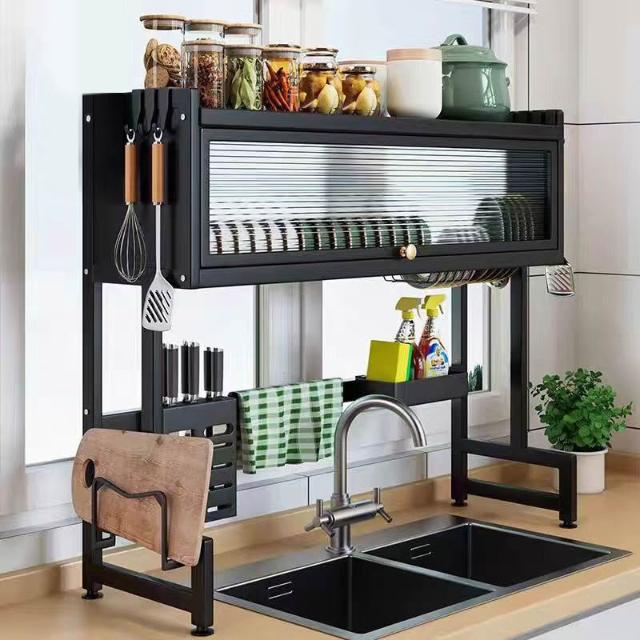 廚房水槽帶蓋置物架防塵帶櫃門碗盤調料收納架水池控水增高瀝水架