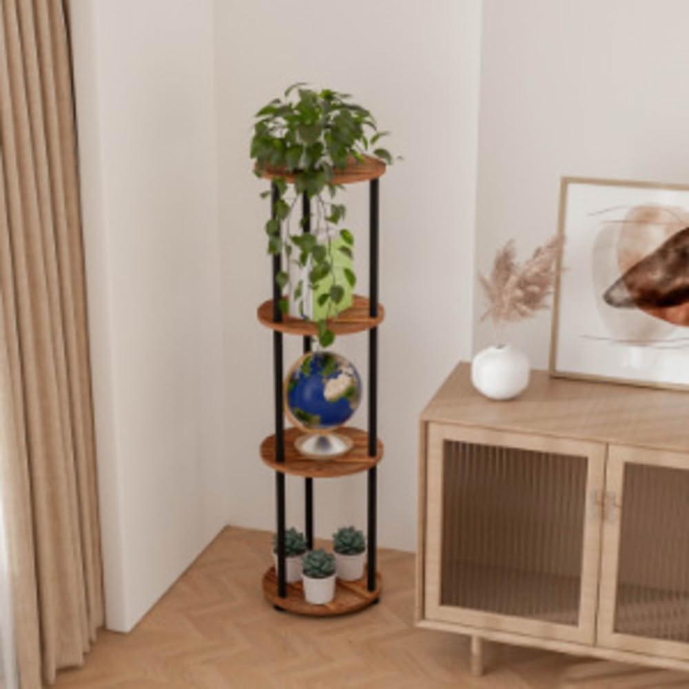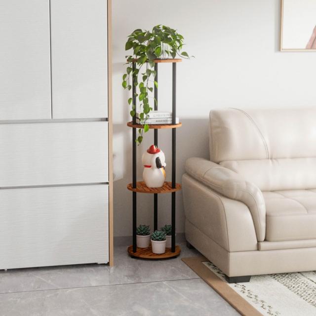 鐵木結合花架置物架中式圓形室內落地式新中式花盆客廳吊蘭花架子