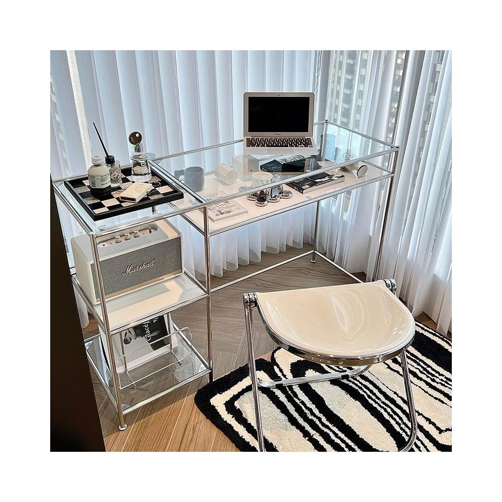 米期 中古不銹鋼電腦桌輕奢鋼化玻璃書桌寫字臺家用簡約化妝桌辦公桌子