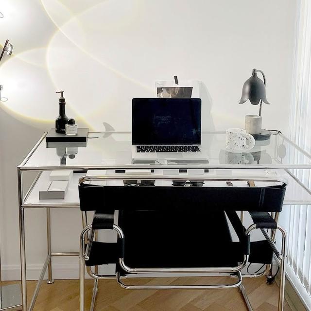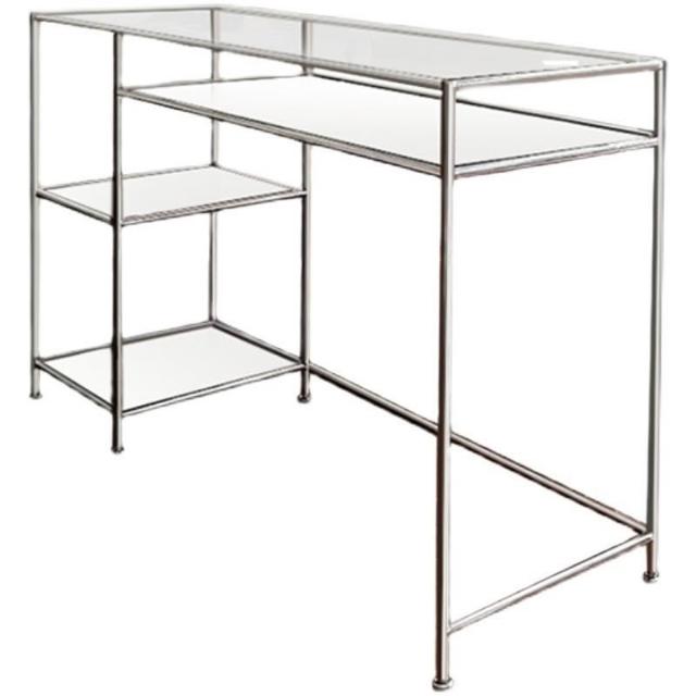 米期 中古不銹鋼電腦桌輕奢鋼化玻璃書桌寫字臺家用簡約化妝桌辦公桌子