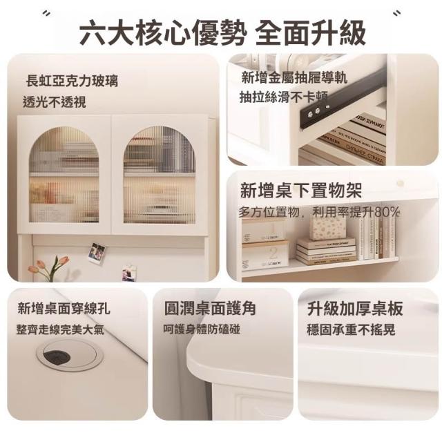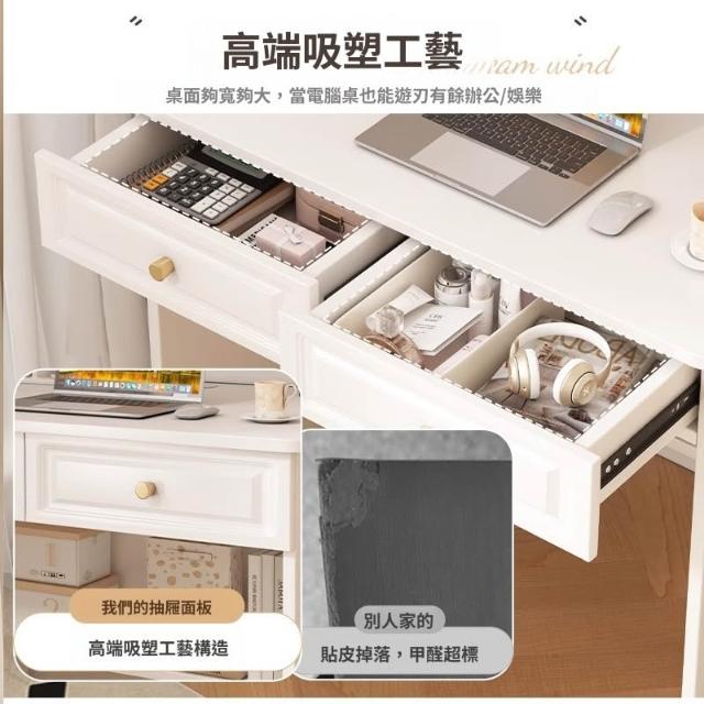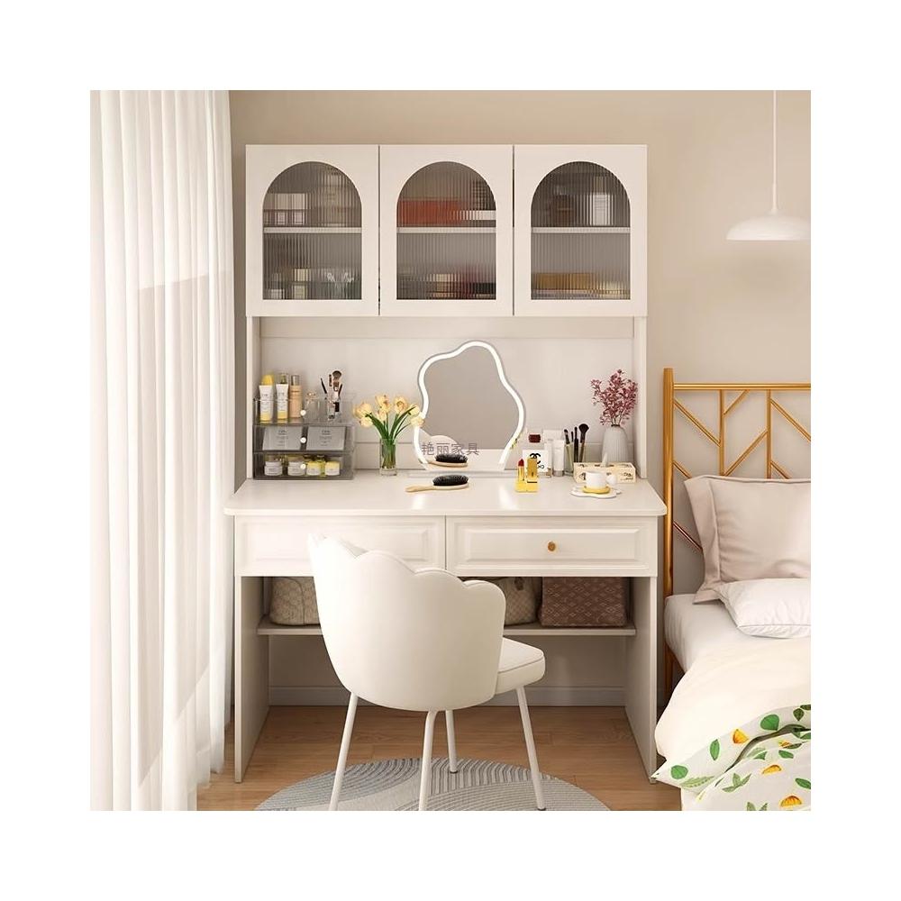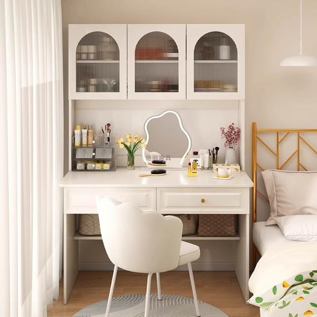 米期 書桌書架一體2025新款梳妝臺女生臥室白色化妝桌成人家用電腦桌子