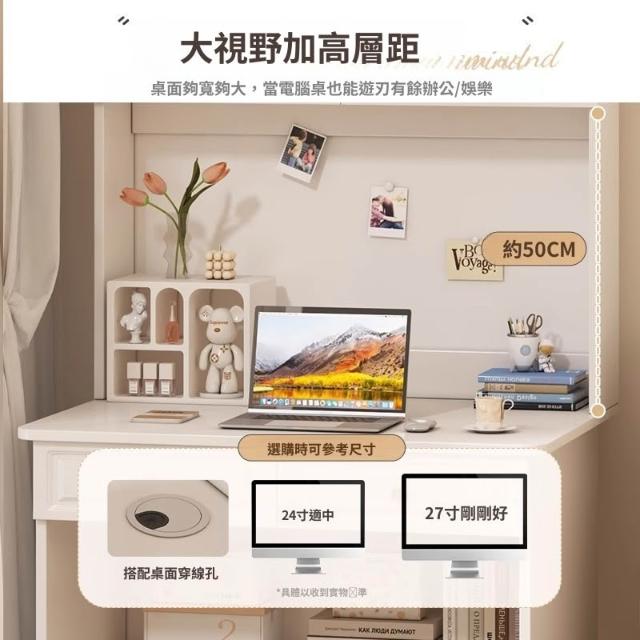 米期 書桌書架一體2025新款梳妝臺女生臥室白色化妝桌成人家用電腦桌子