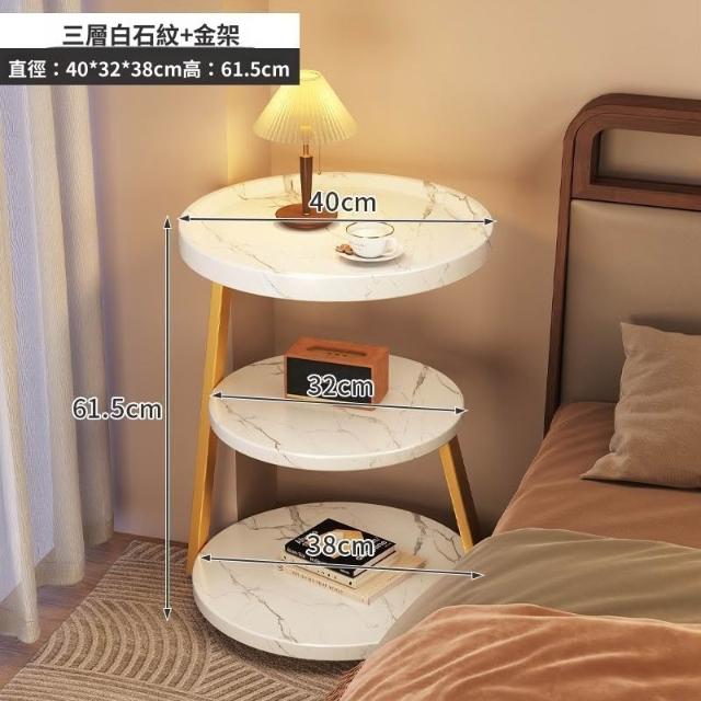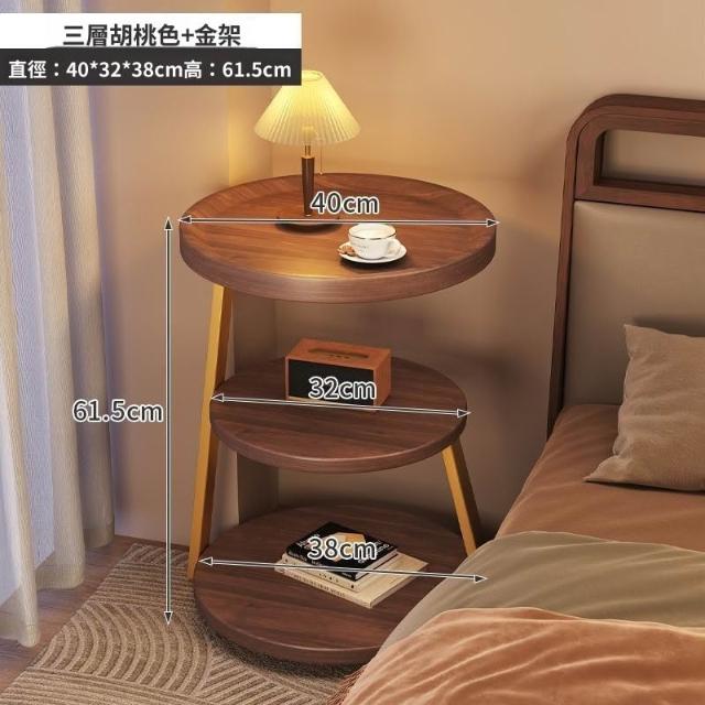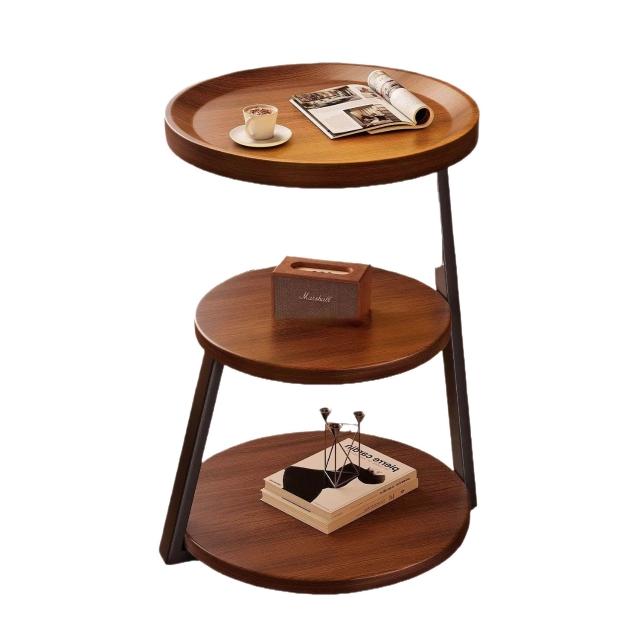 米期精品 中古風沙發邊幾三層茶幾床頭櫃置物架客廳臥室家用小戶型角幾批發