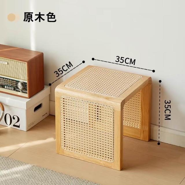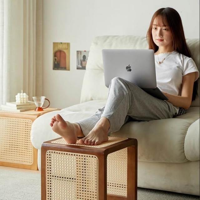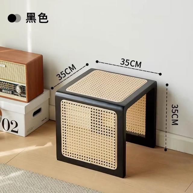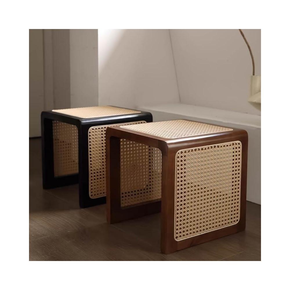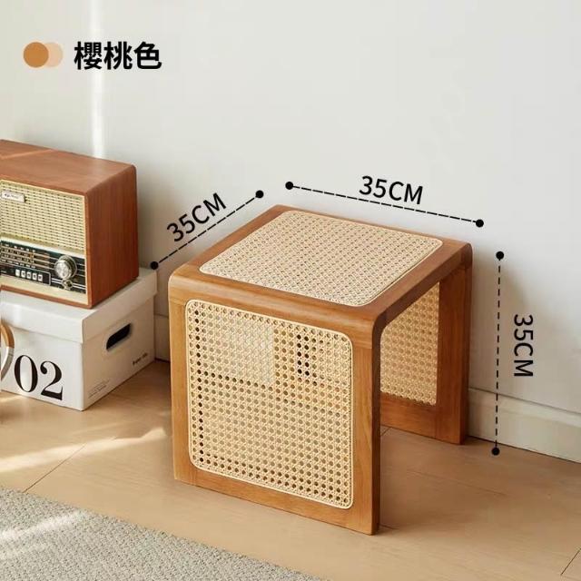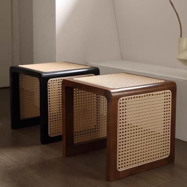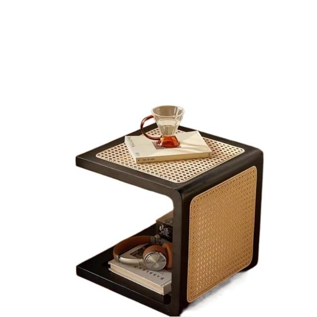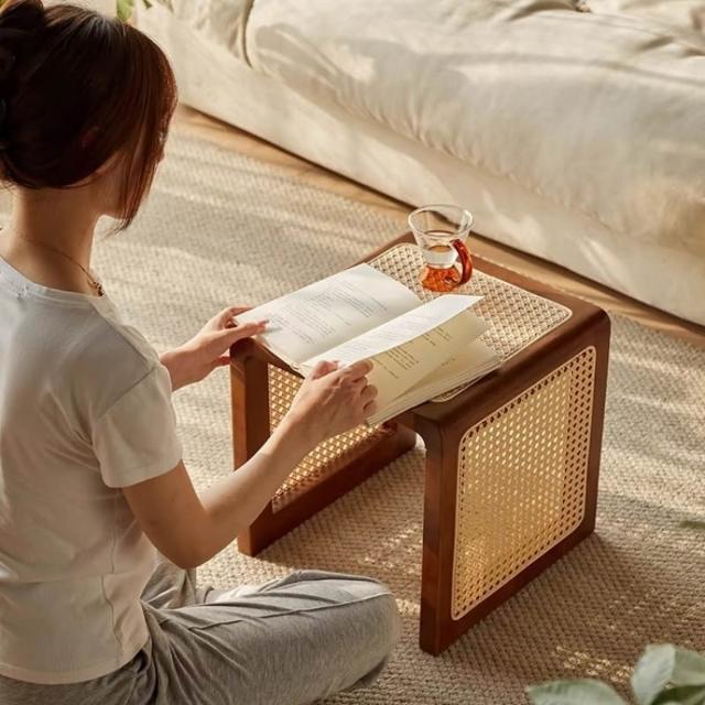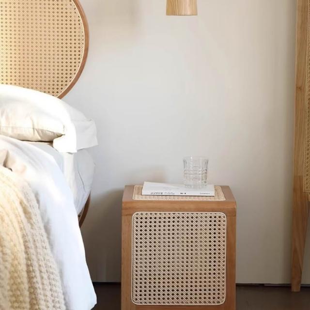 米期精品 日式實木小茶幾藤編床頭櫃中古沙發邊幾侘寂風家具復古編織方茶桌