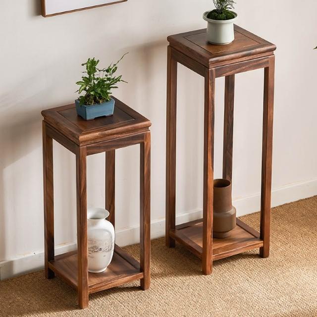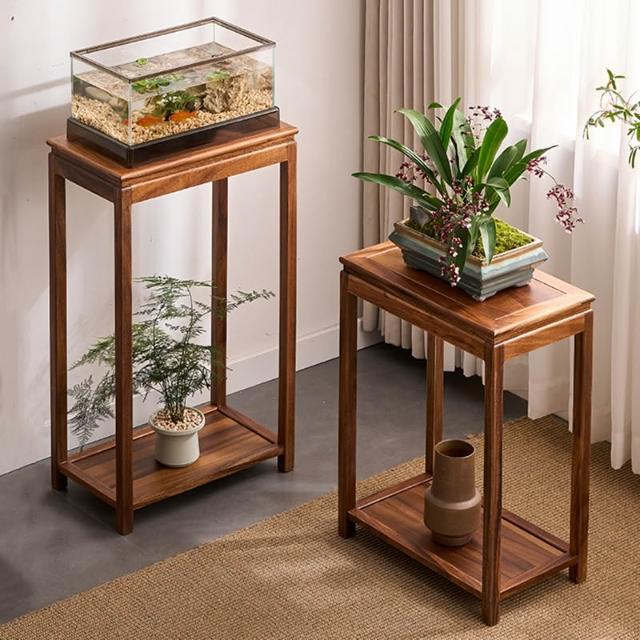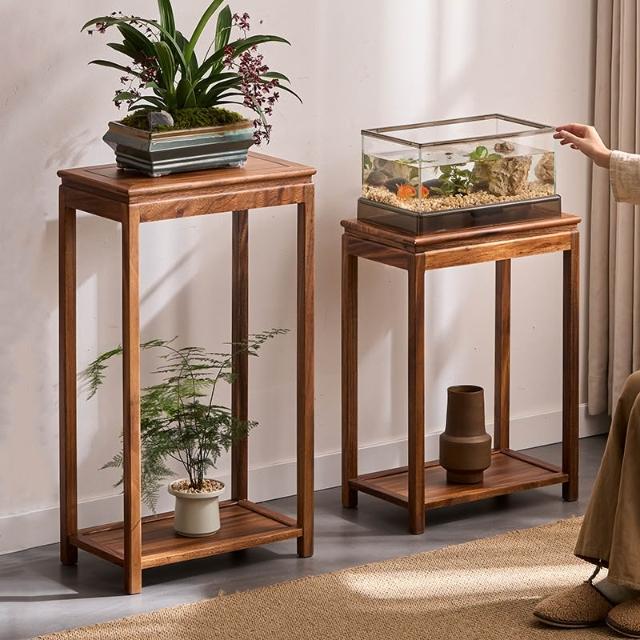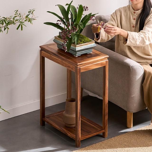 米期精品 胡桃木沙發邊幾角幾邊櫃小方桌子小茶幾實木新中式花架魚缸置物架