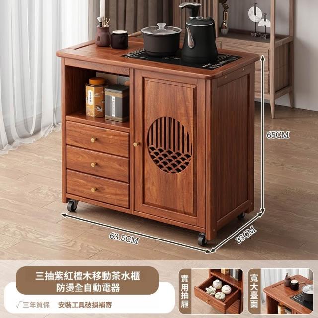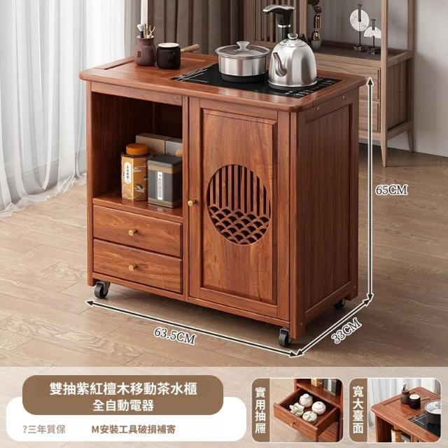 米期精品 實木移動茶水櫃新中式檀木可燒水泡茶一體茶幾家用茶室辦公桌邊櫃