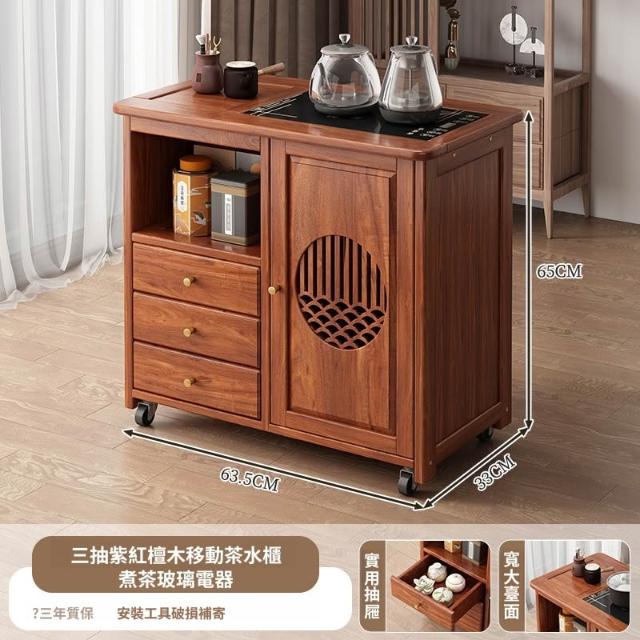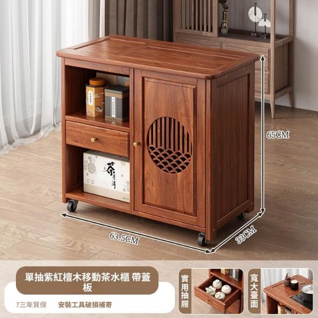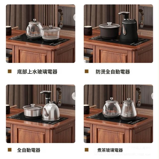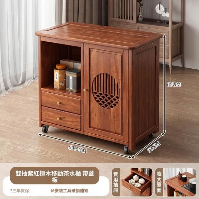 米期精品 實木移動茶水櫃新中式檀木可燒水泡茶一體茶幾家用茶室辦公桌邊櫃