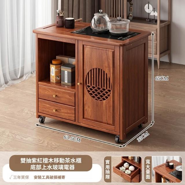 米期精品 實木移動茶水櫃新中式檀木可燒水泡茶一體茶幾家用茶室辦公桌邊櫃